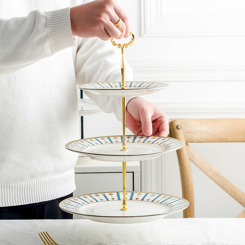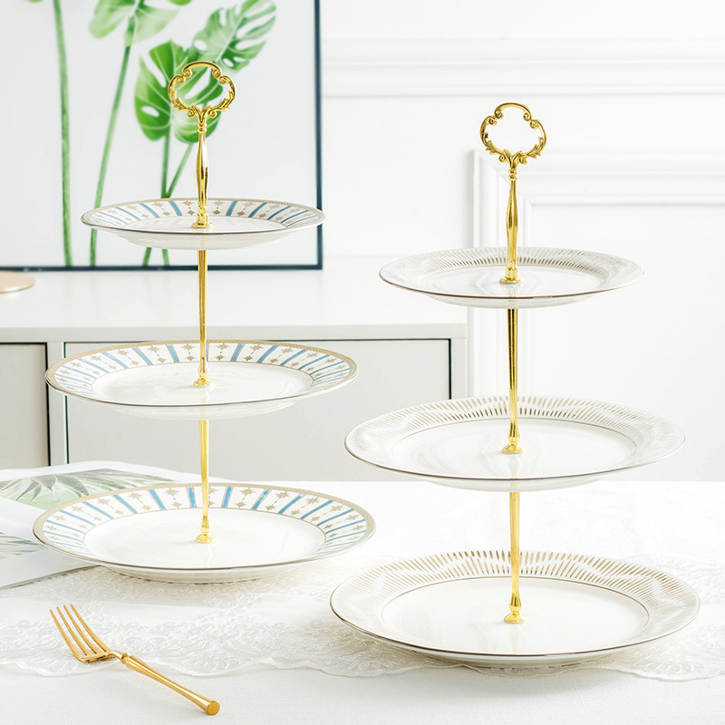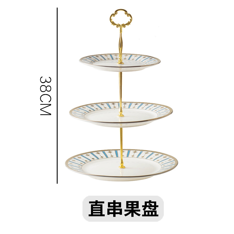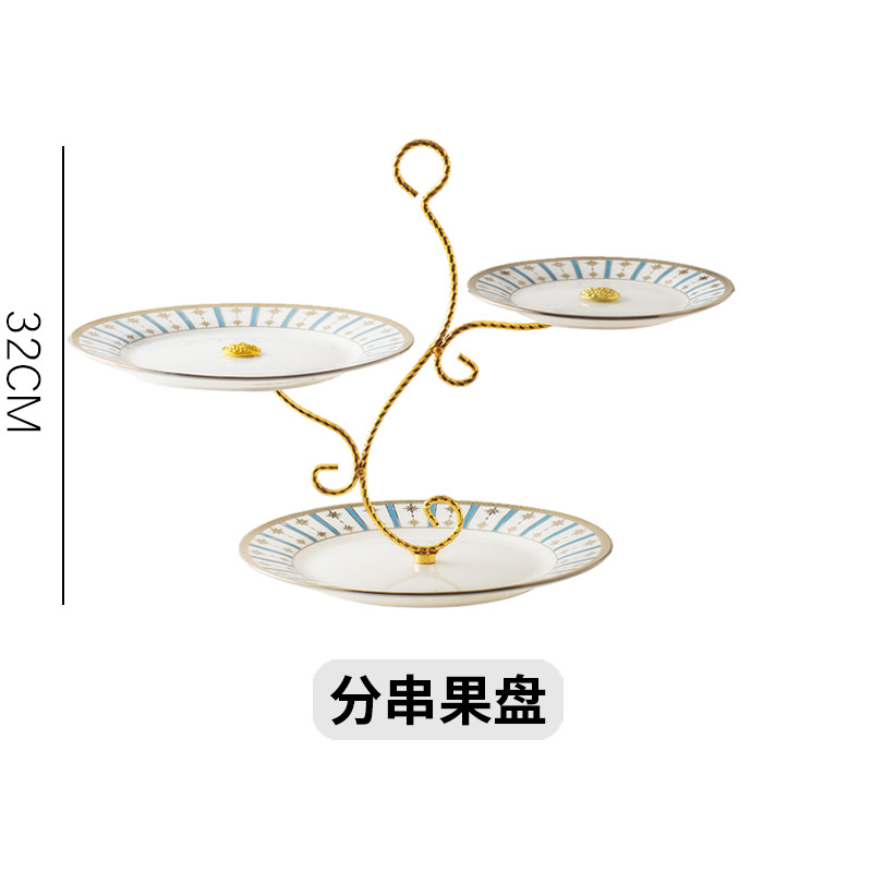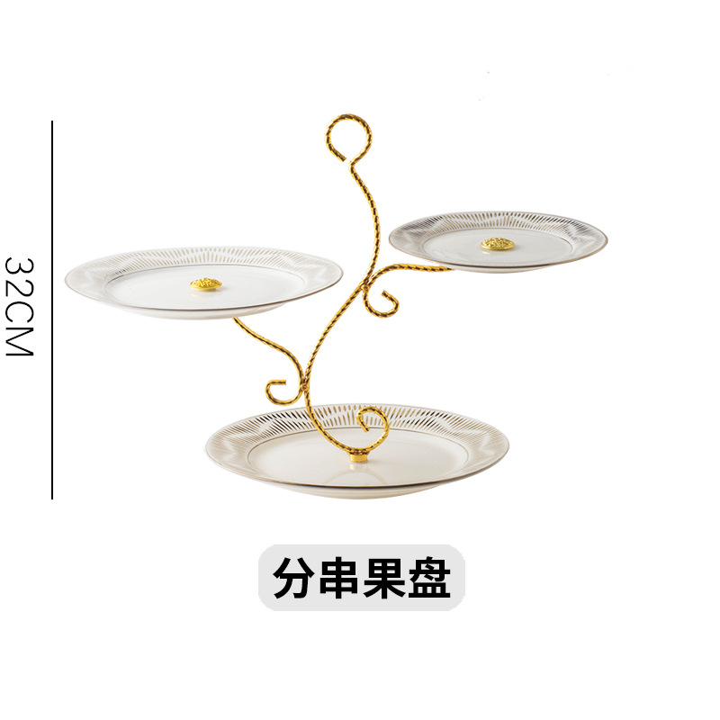 北欧轻奢金边陶瓷串盘水果点心盘糖果托盘欧式多层蛋糕盘甜品摆盘 English | 投诉