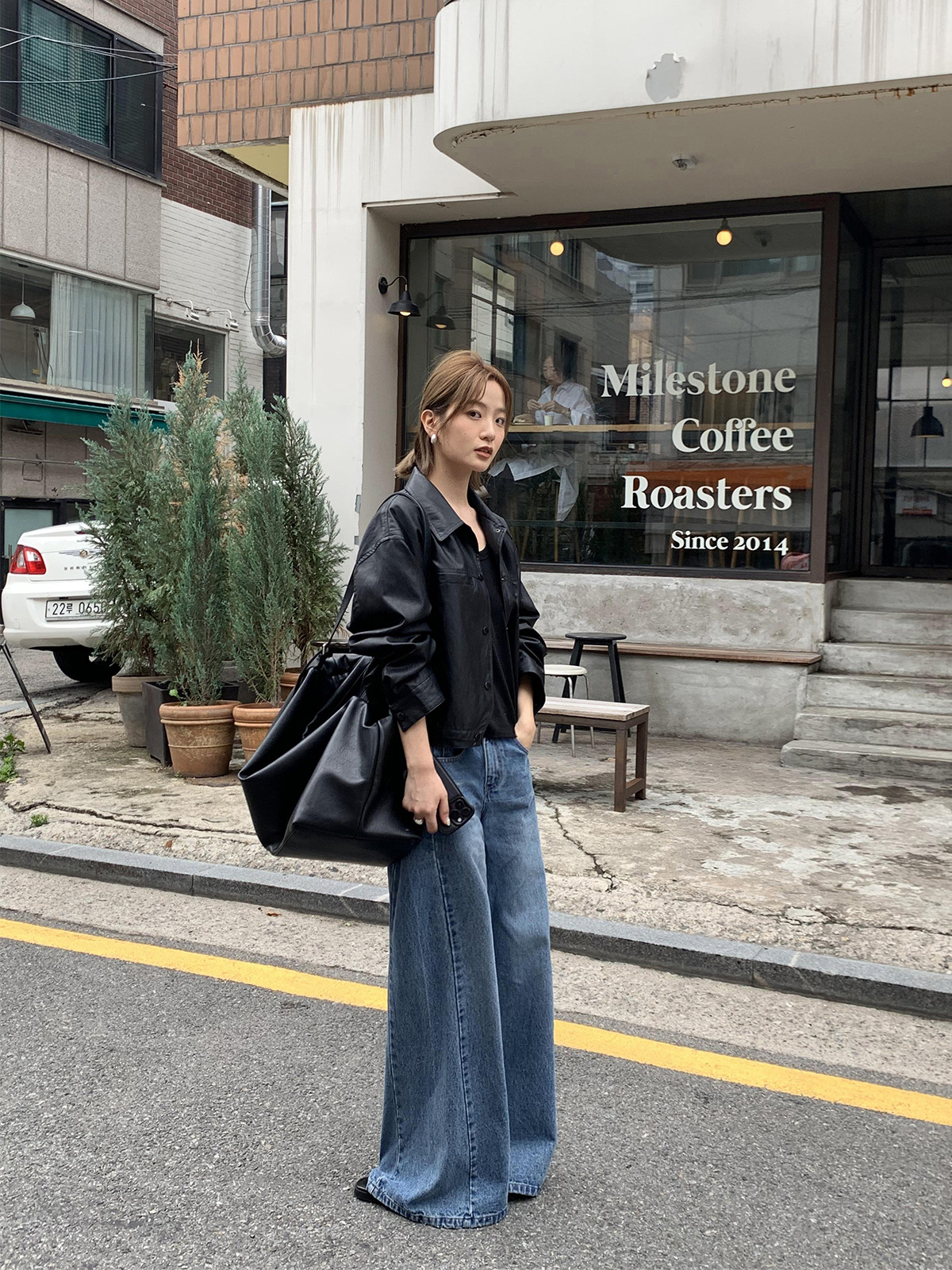 TG 时髦复古阔腿牛仔裤女早秋新款高腰宽筒显瘦拖地长裤