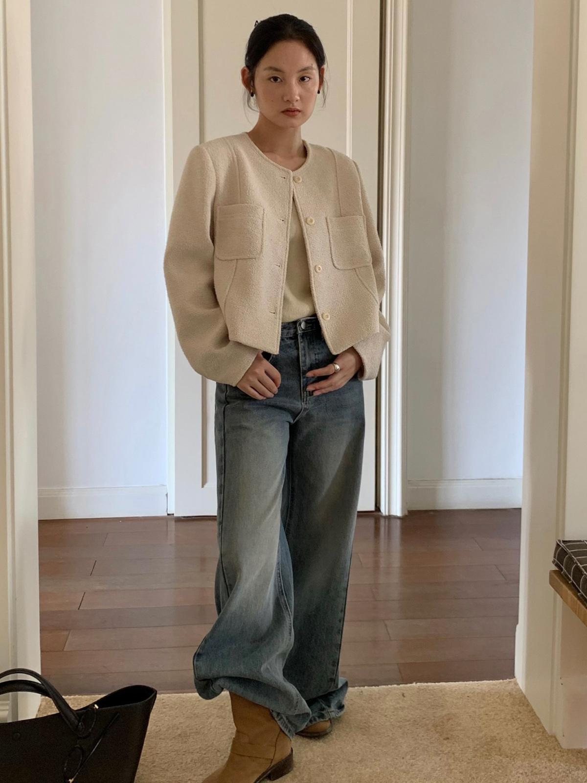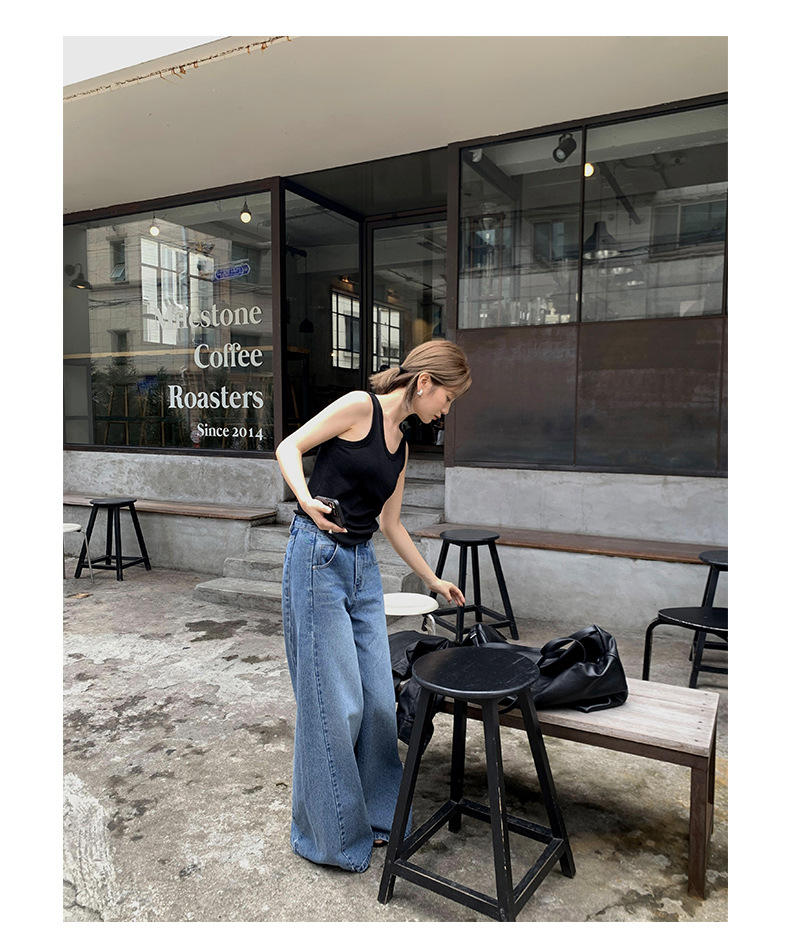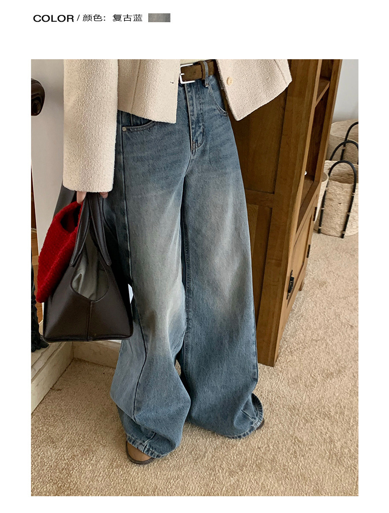 TG 时髦复古阔腿牛仔裤女早秋新款高腰宽筒显瘦拖地长裤 English | 投诉