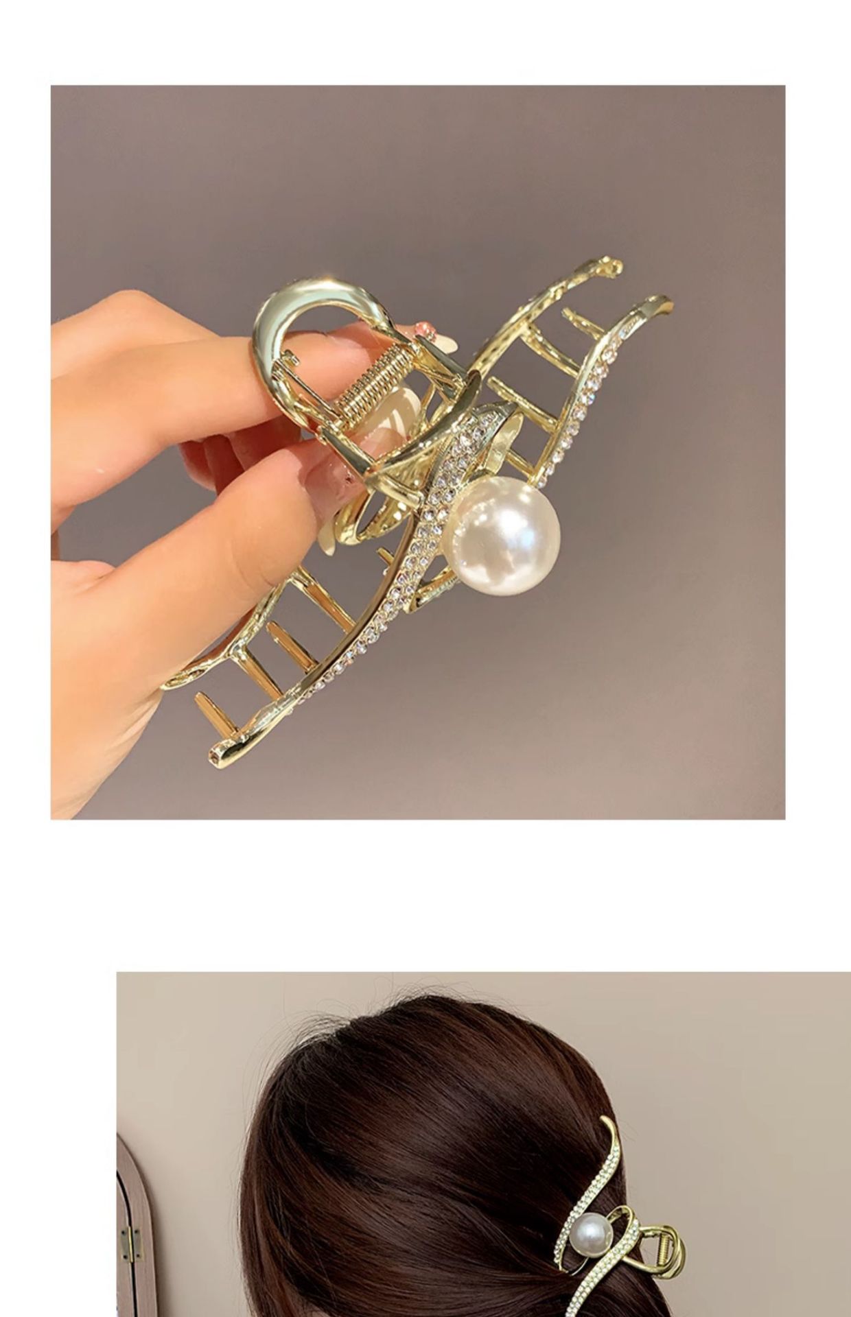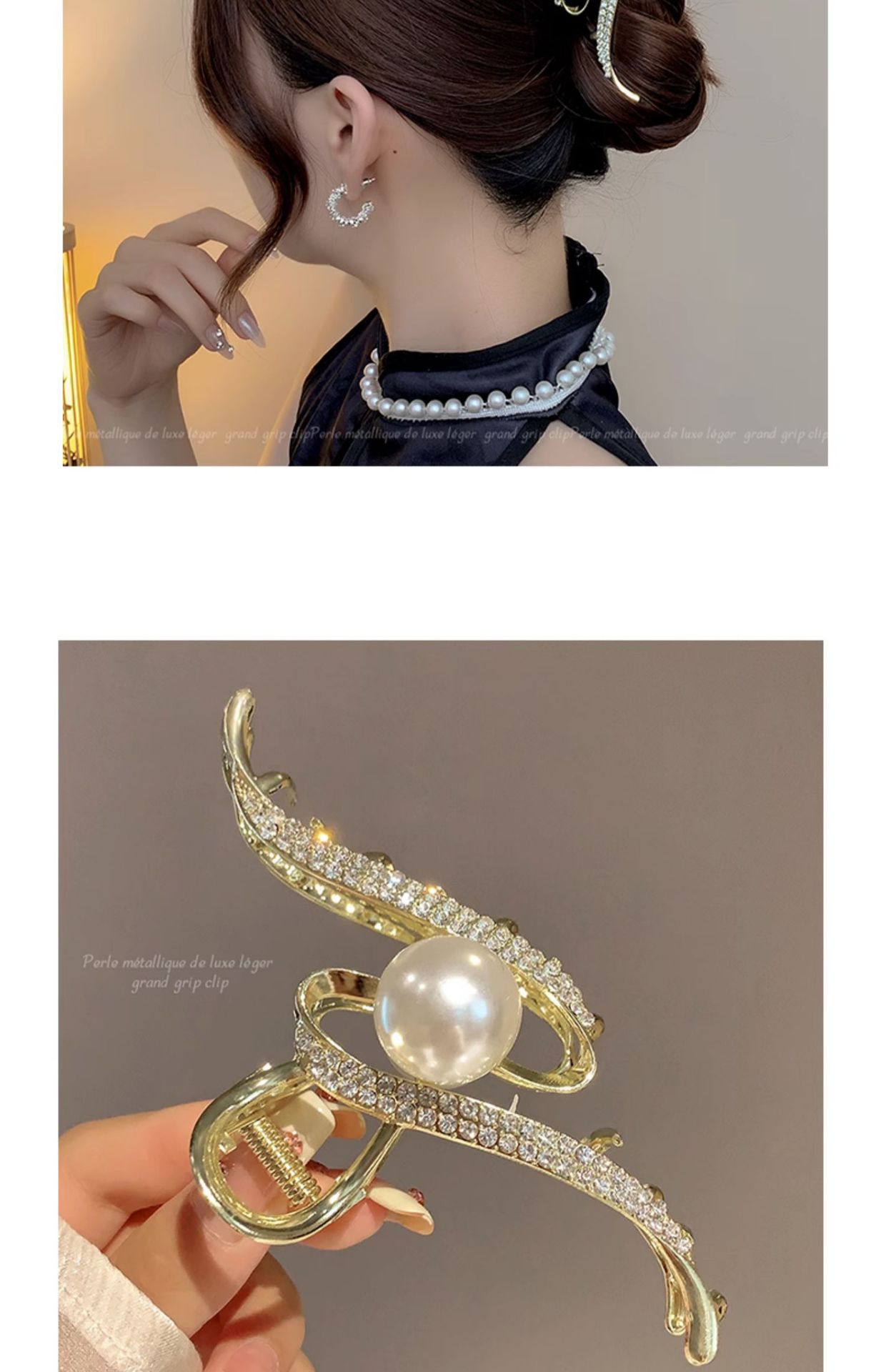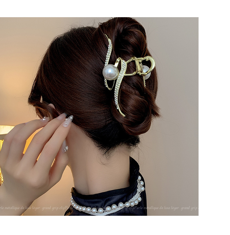 轻奢高级感抓夹女后脑勺盘发鲨鱼夹时尚优雅气质珍珠发夹卡子头饰 English | 投诉