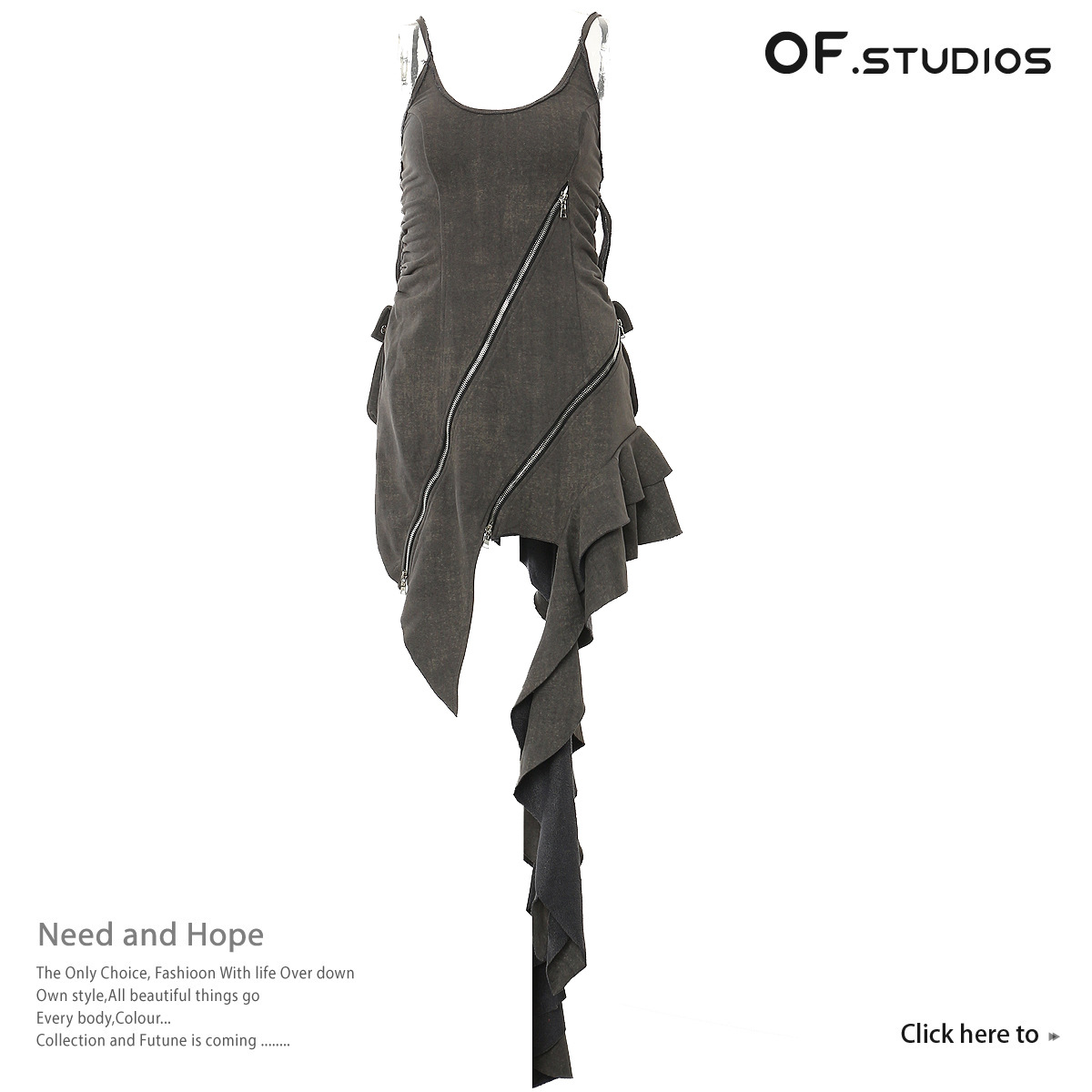 新款重工不规则裁剪拉链背心连衣裙 女 English | 投诉