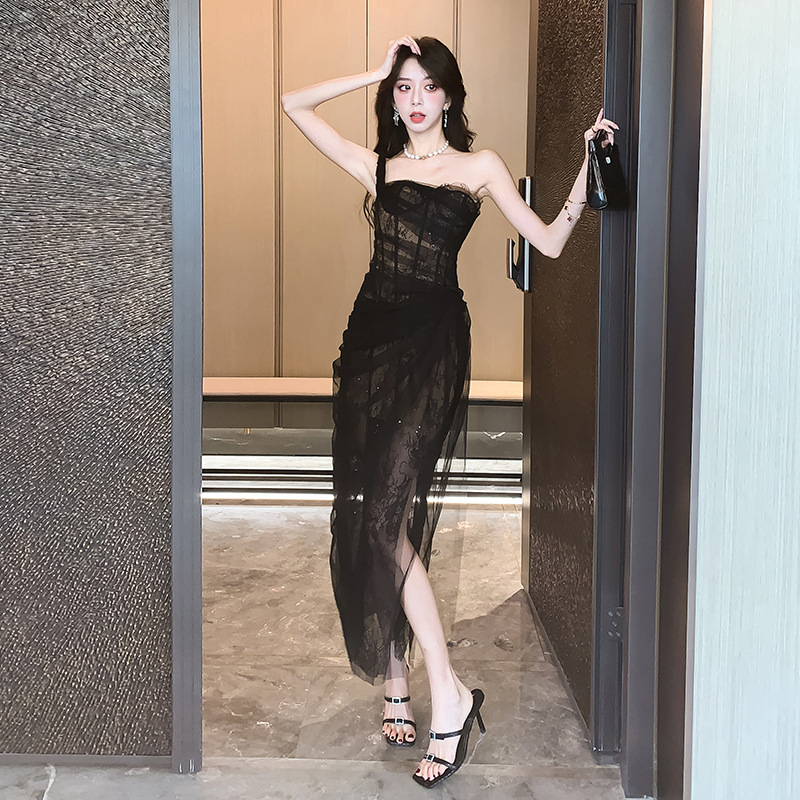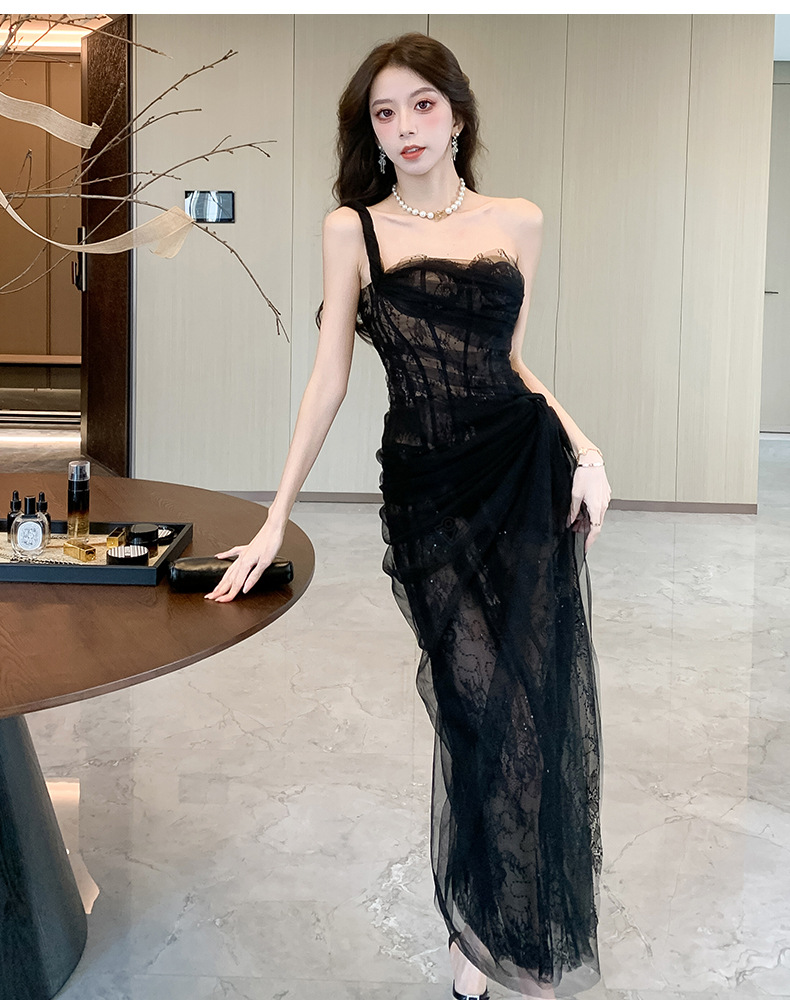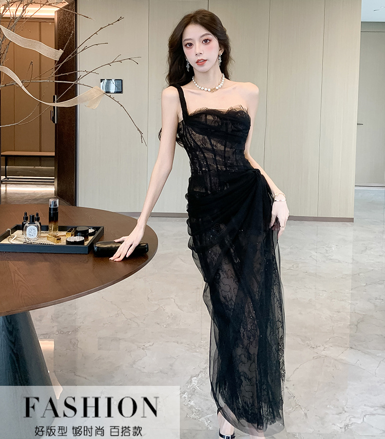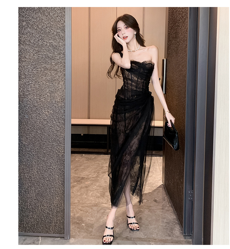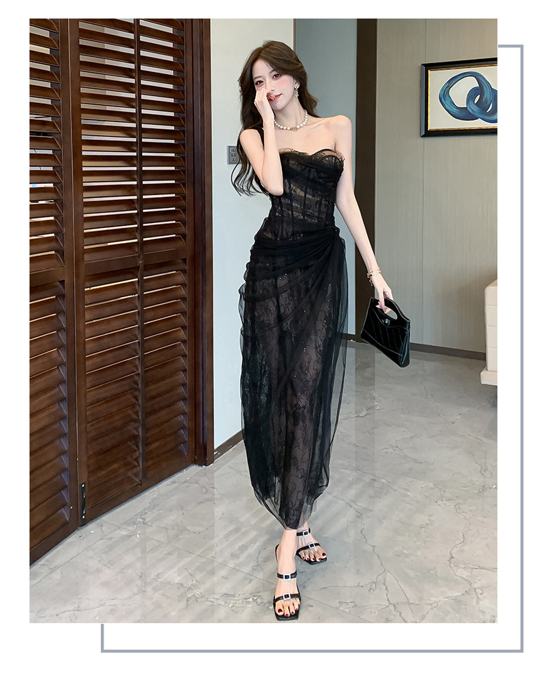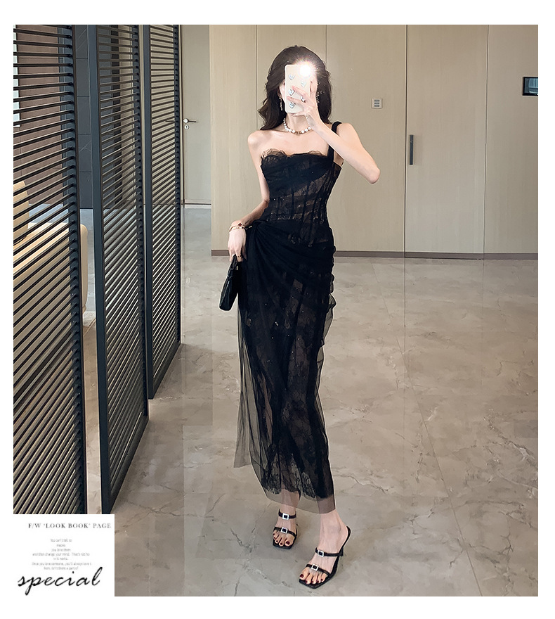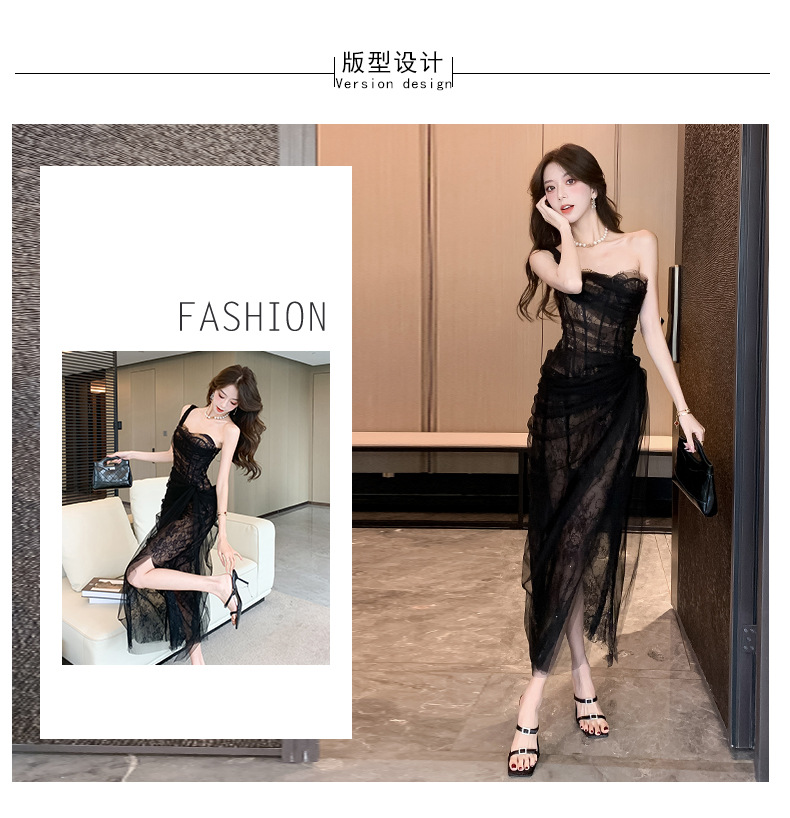小众轻纱抹胸吊带连衣裙高级感礼服裙盐系轻熟风网纱裙海边 English | 投诉