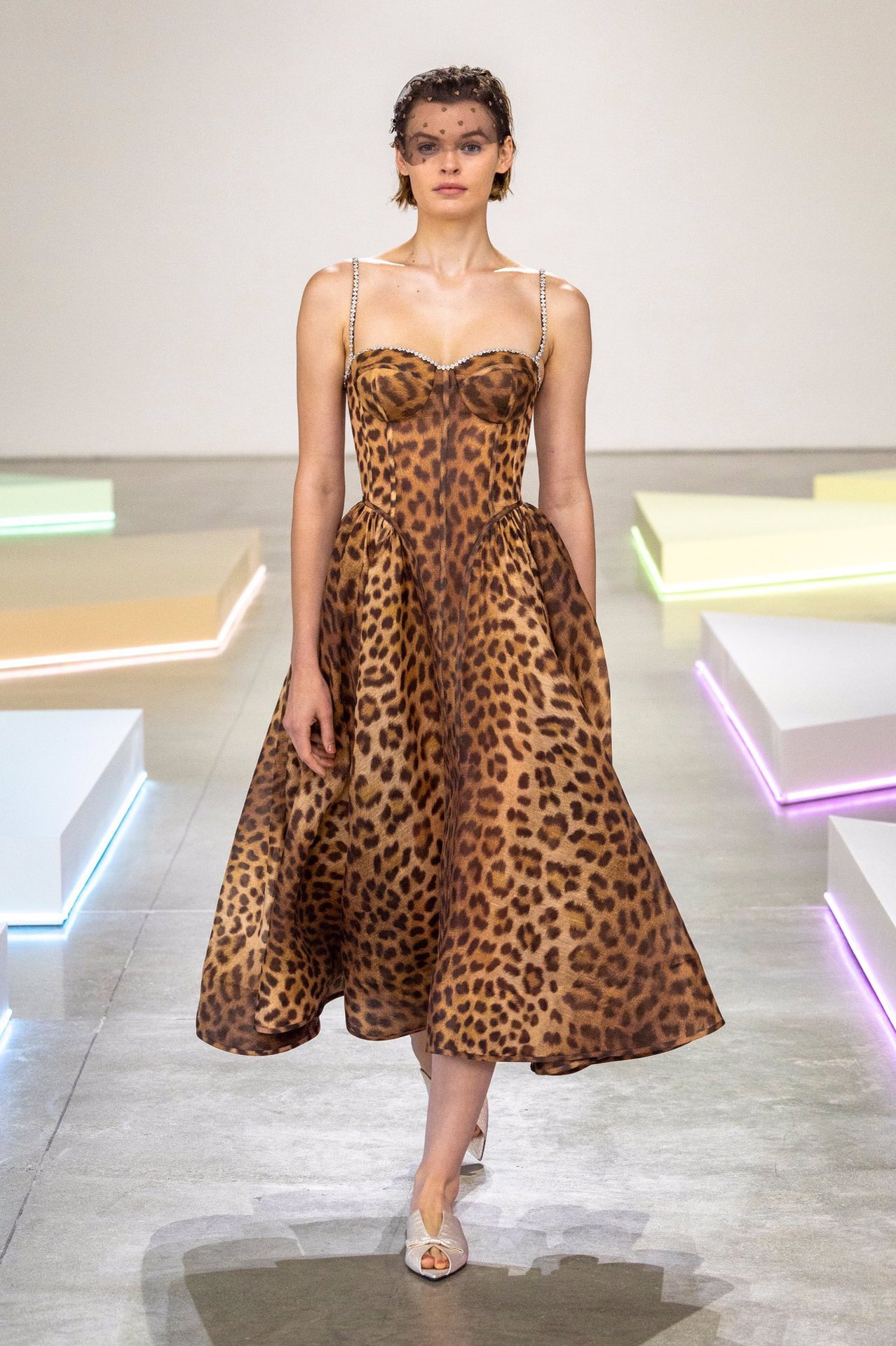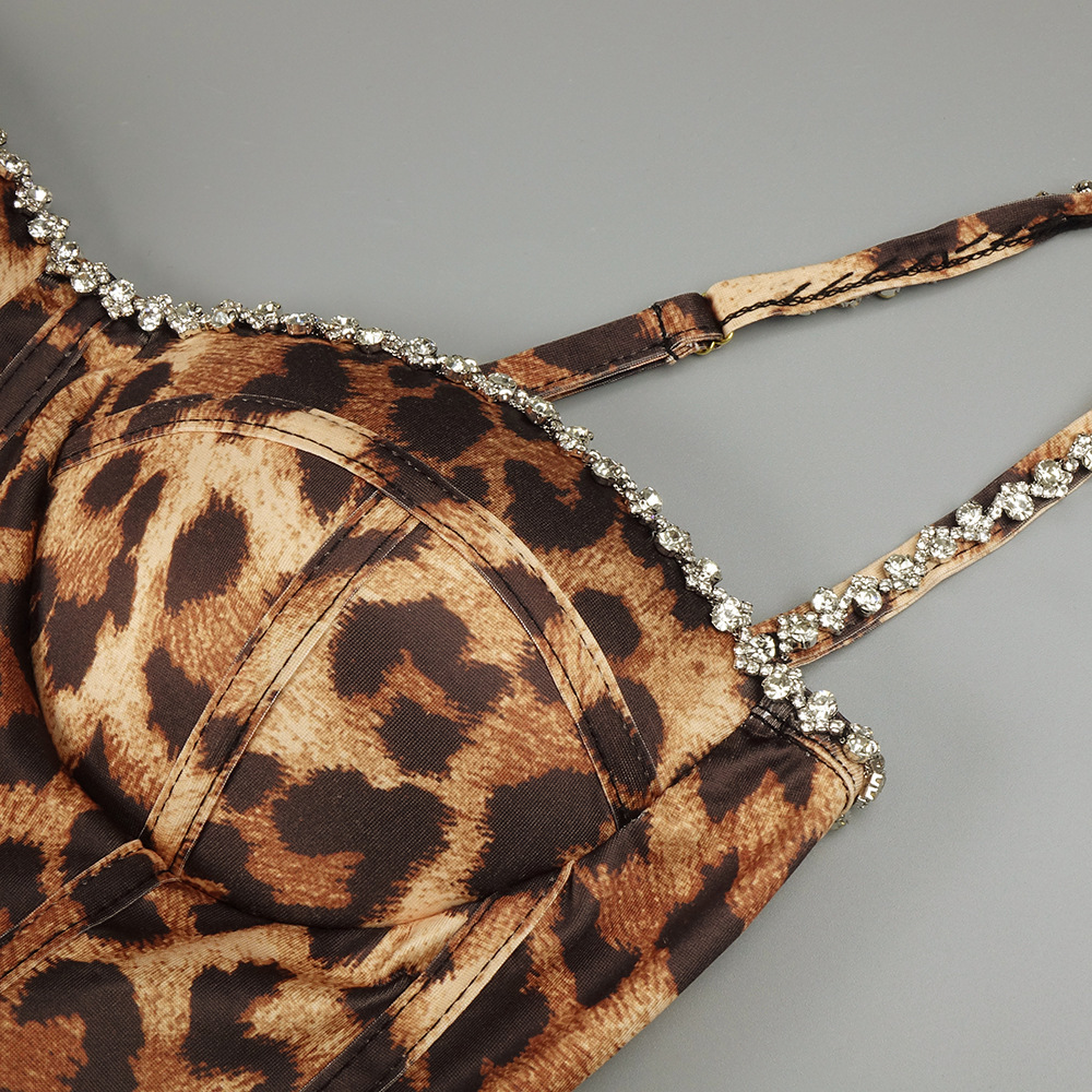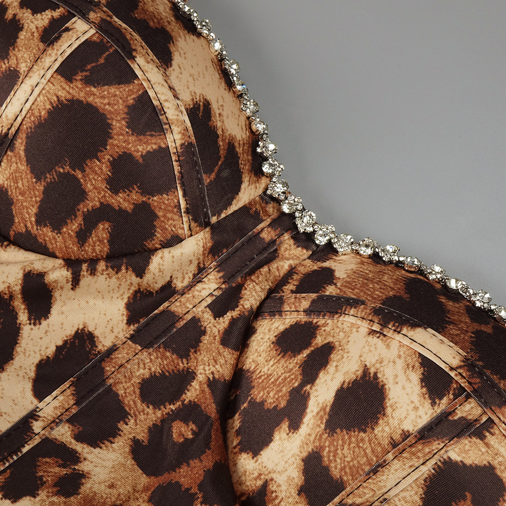 欧美小众性感豹纹钉钻蓬蓬吊带连衣裙复古收腰晚宴礼服 English | 投诉