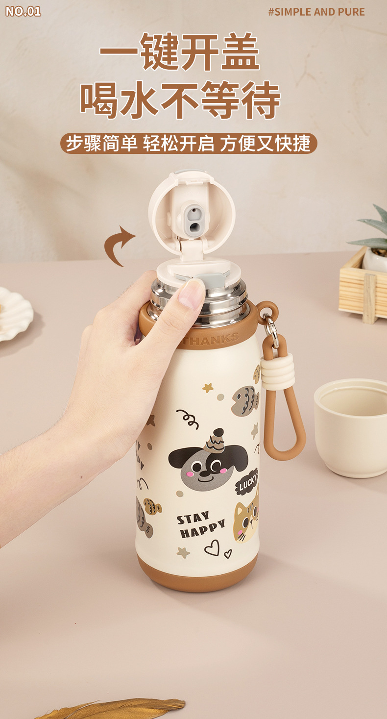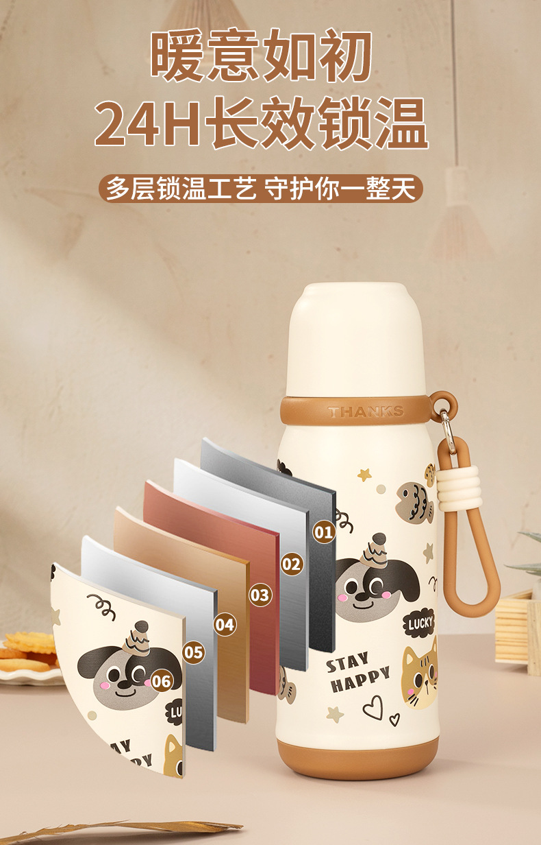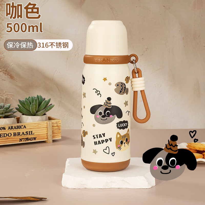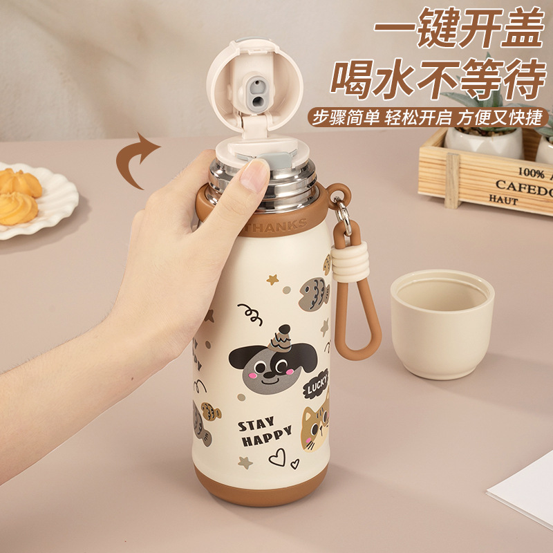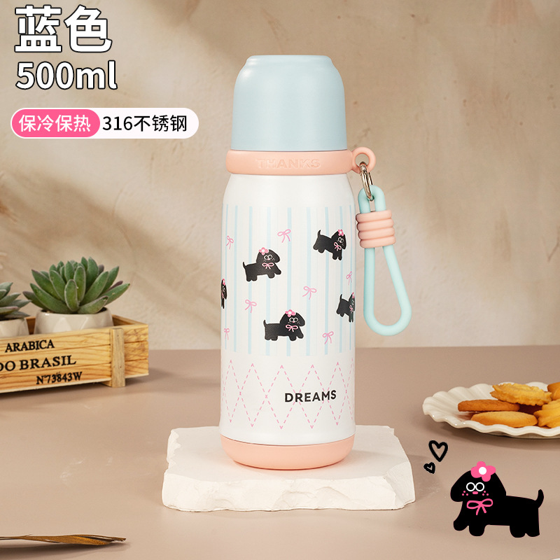 316不锈钢儿童保温杯一杯两盖可爱时尚男女学生杯便携提绳随行杯