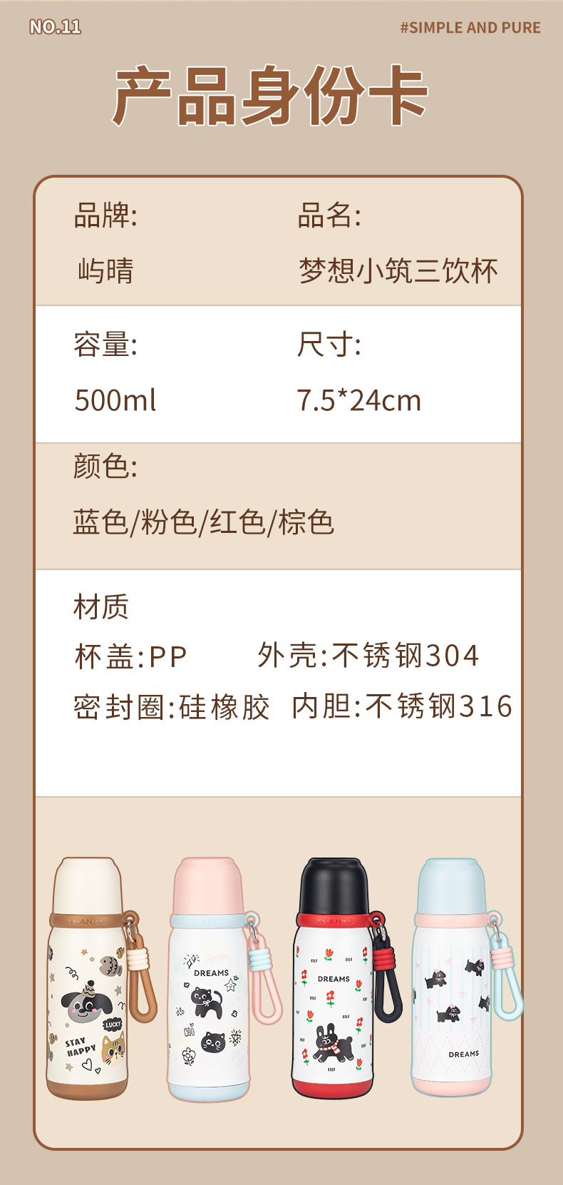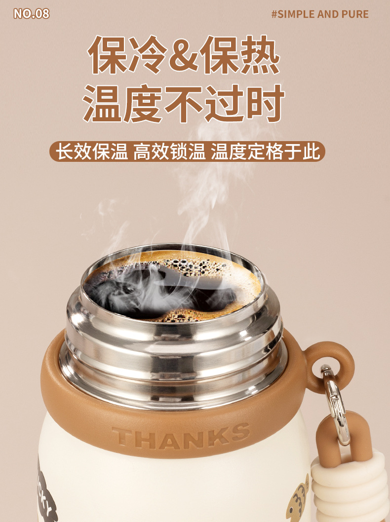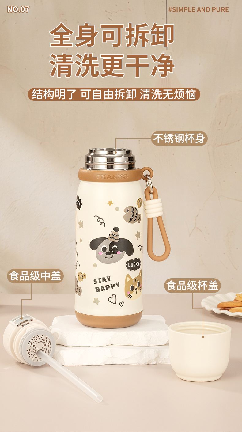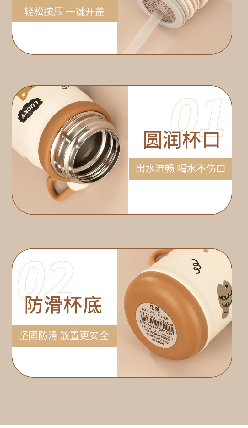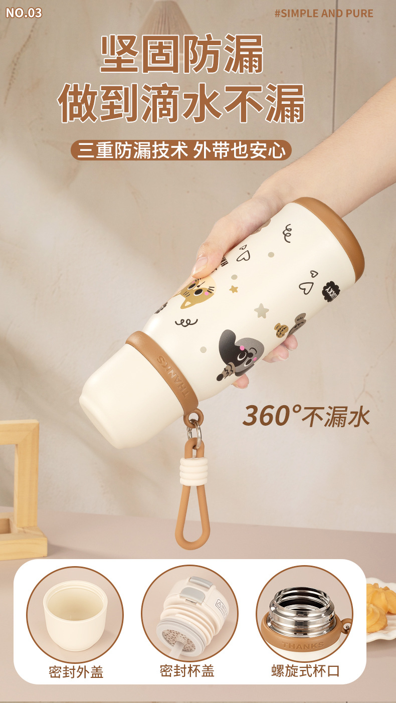 316不锈钢儿童保温杯一杯两盖可爱时尚男女学生杯便携提绳随行杯 投诉