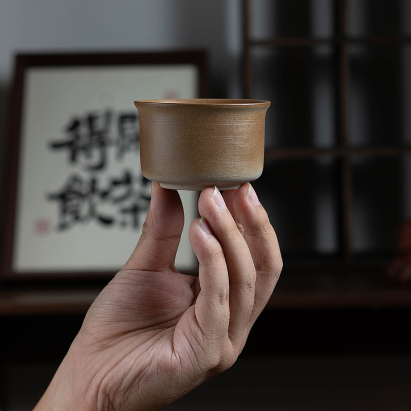 创意粗陶品茗杯子窑变单杯围炉煮茶手工茶杯复古陶瓷户外家用茶器