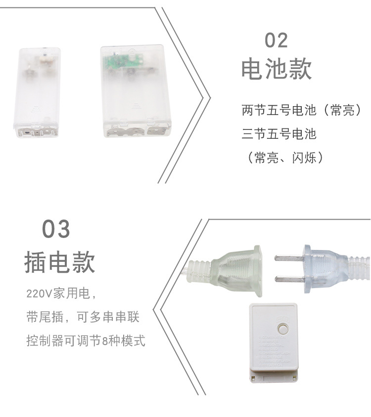 | 5米50灯电池款(常亮+闪烁) | ¥2400 | 546564个可售 |