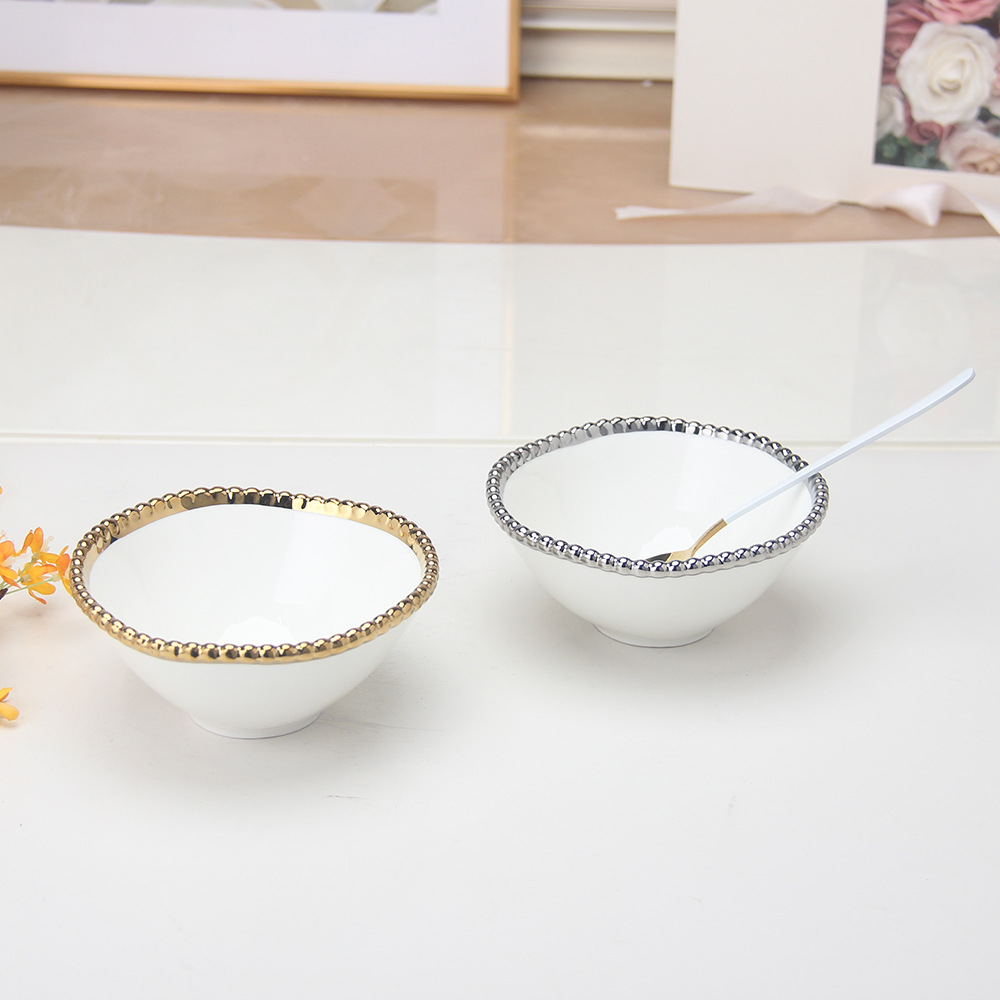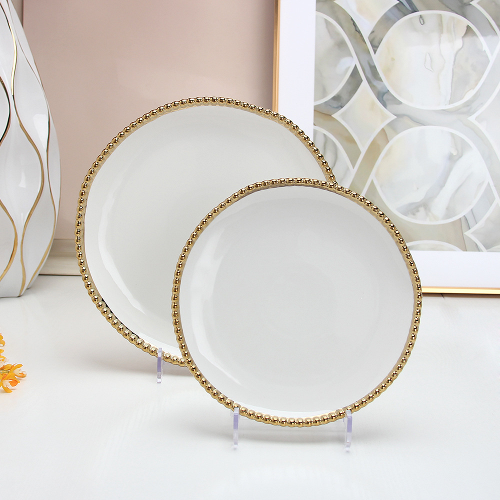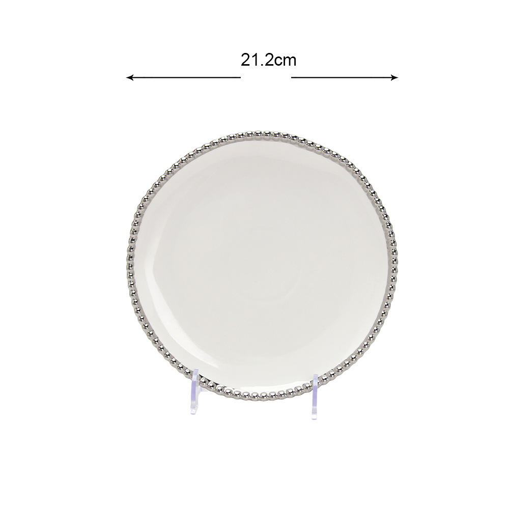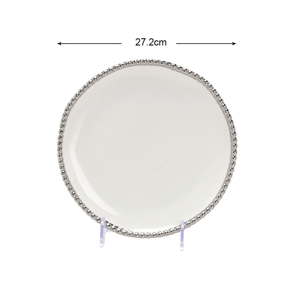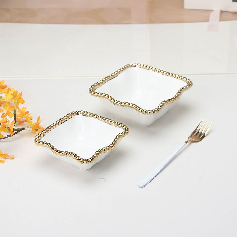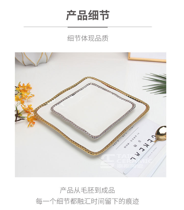 珠点陶瓷盘子金边珠点方盘西餐盘甜品盘水果盘牛排盘家用沙拉盘 English | 投诉