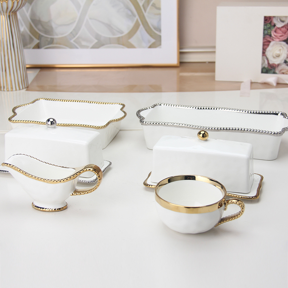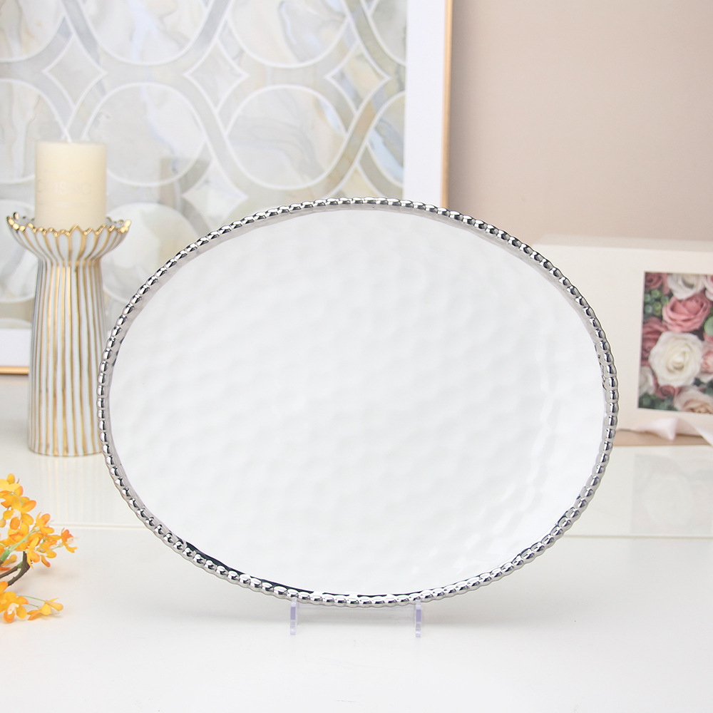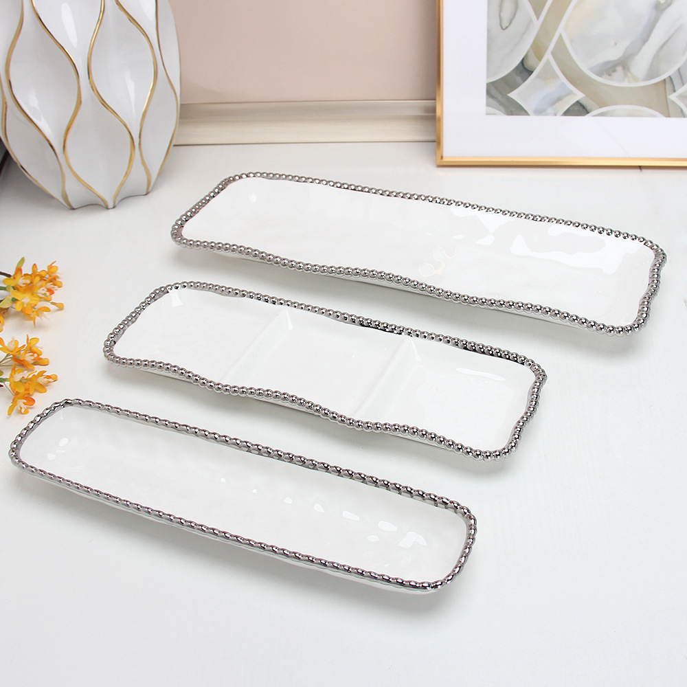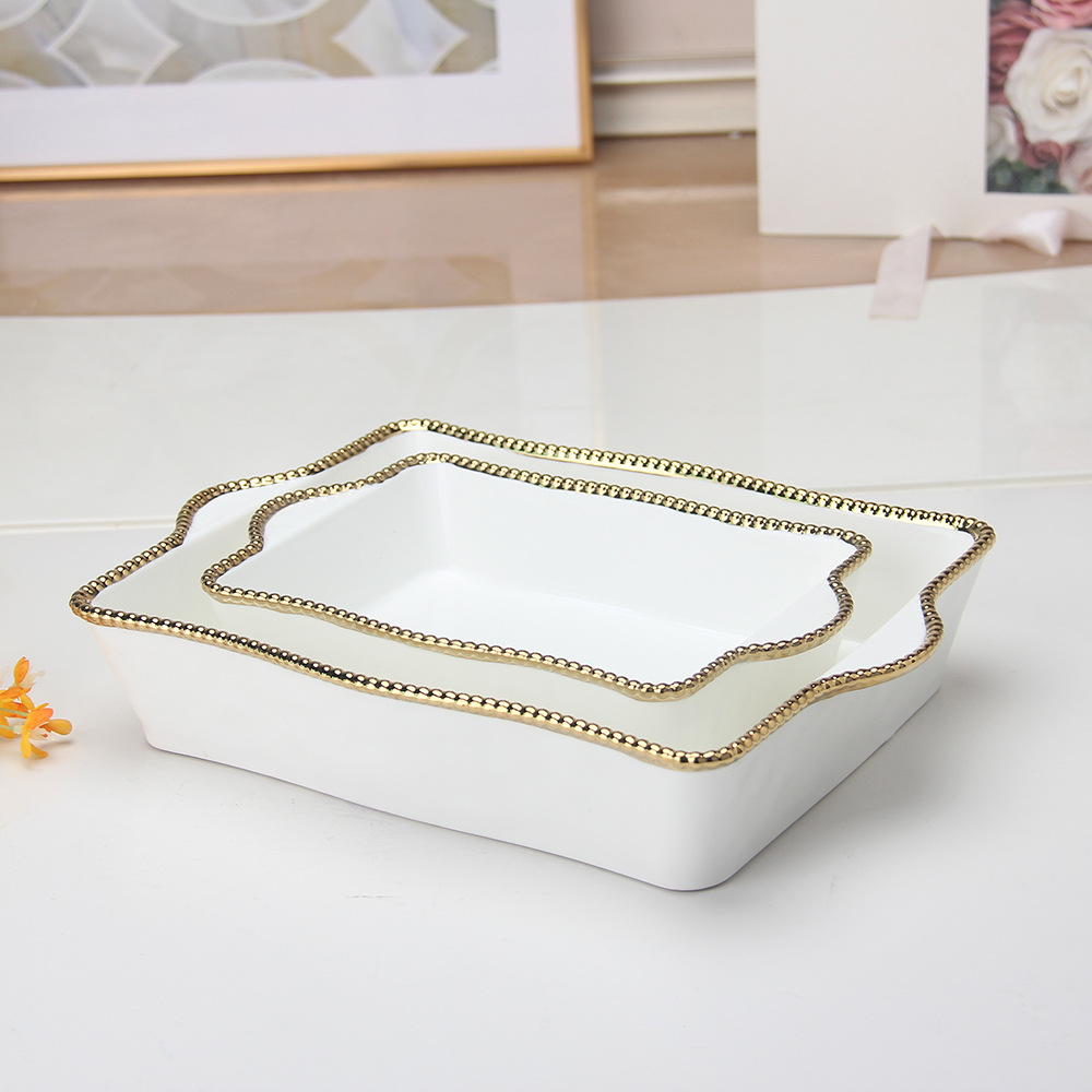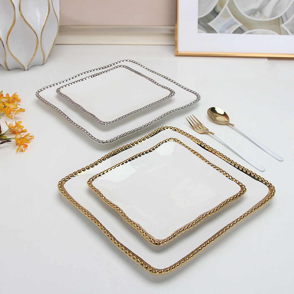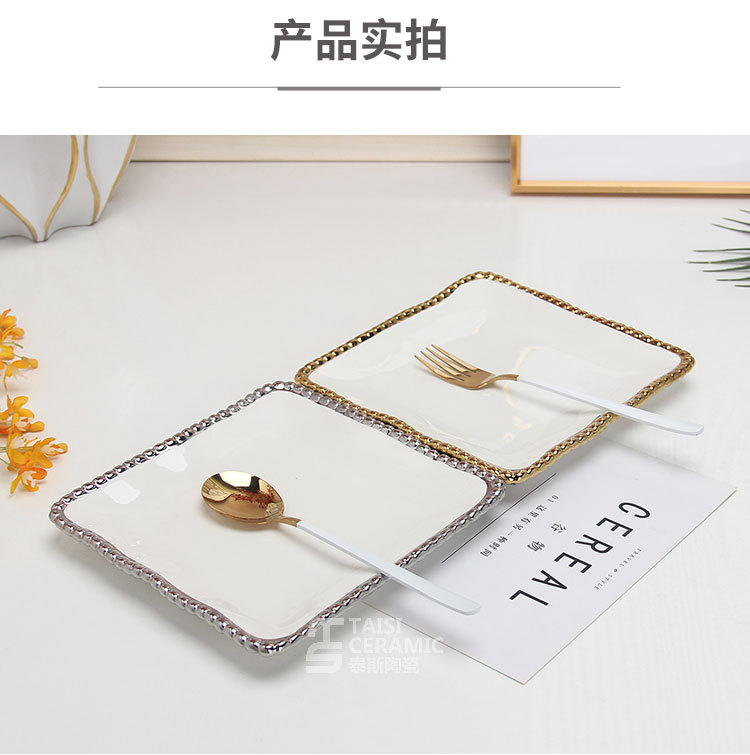 珠点陶瓷盘子金边珠点方盘西餐盘甜品盘水果盘牛排盘家用沙拉盘