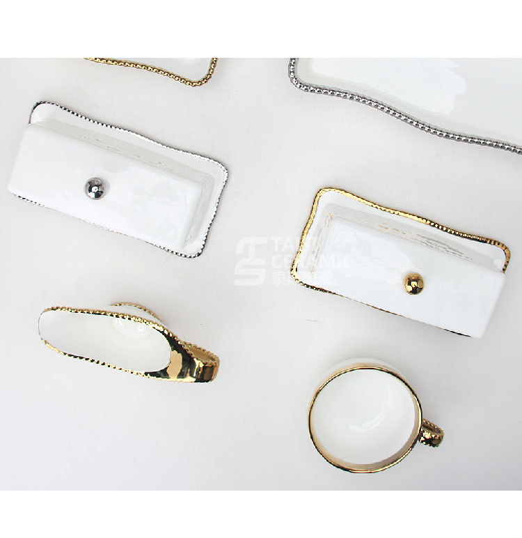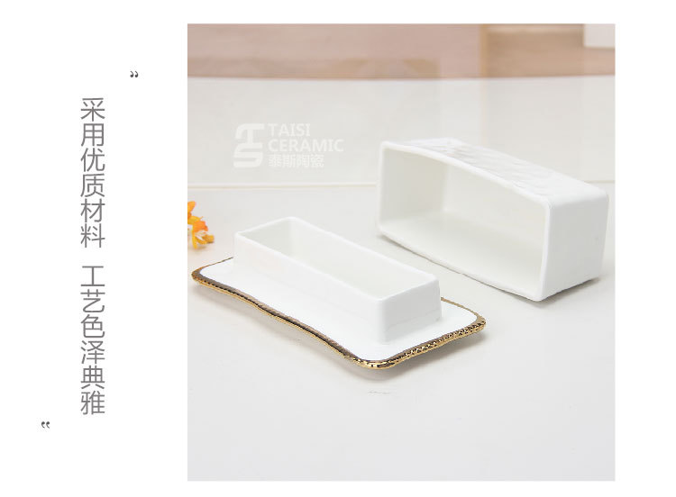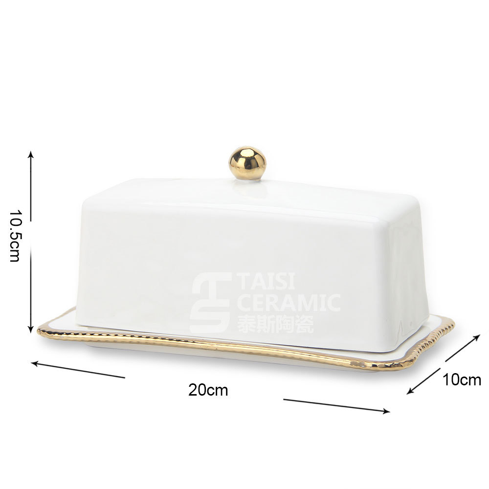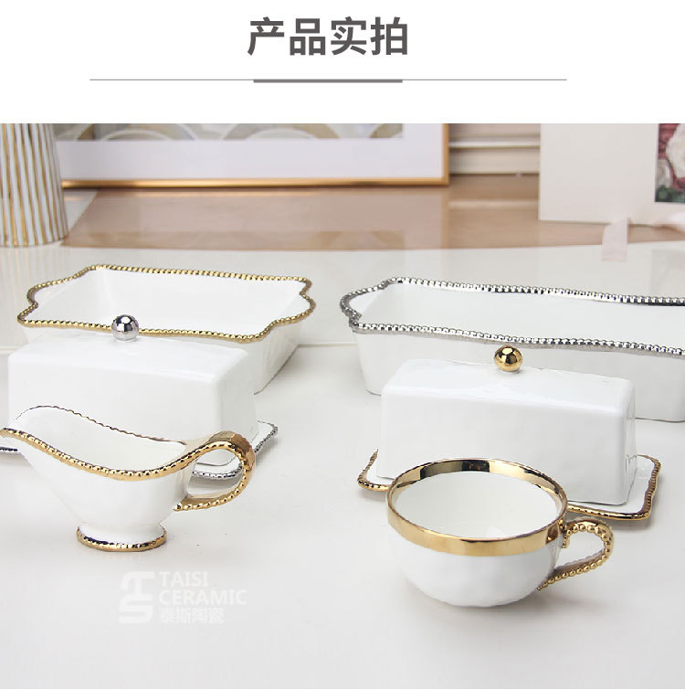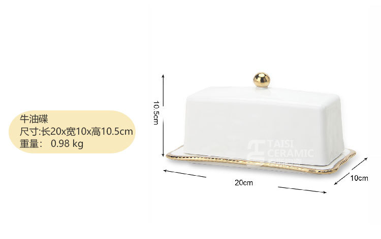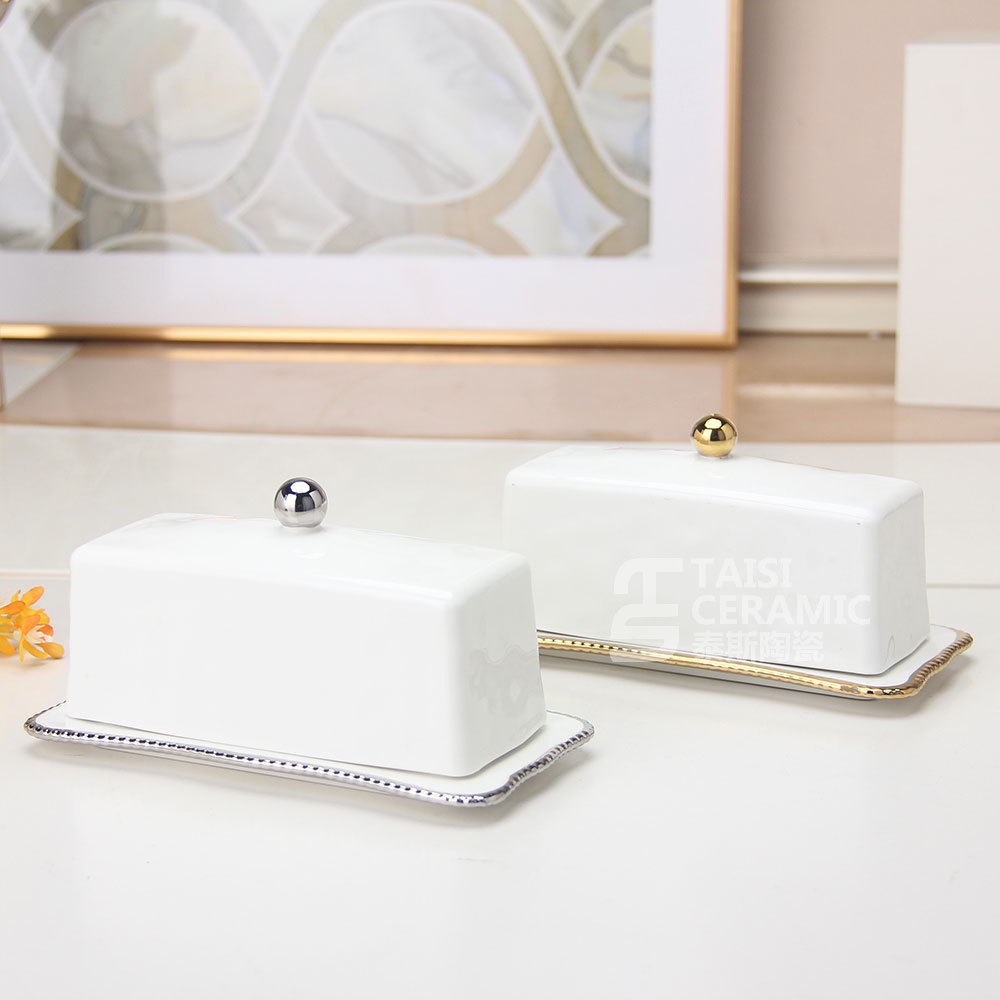轻奢陶瓷黄油碟带盖长方形西式牛油收纳盒面包黄油盒黑椒酱料汁斗 English | 投诉