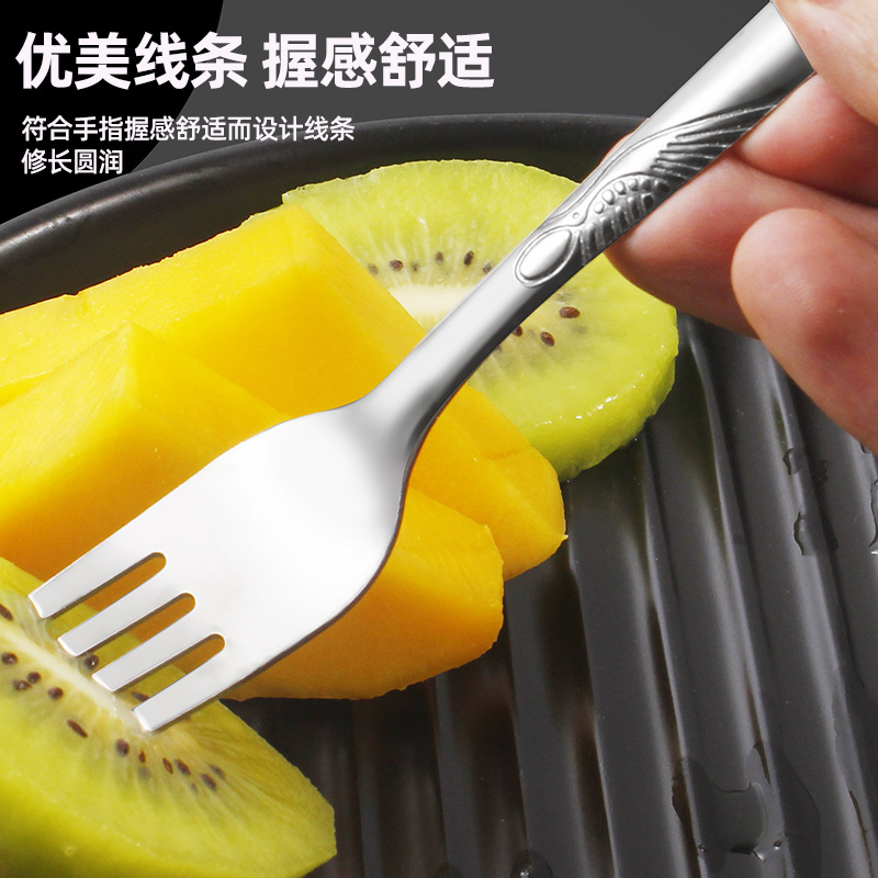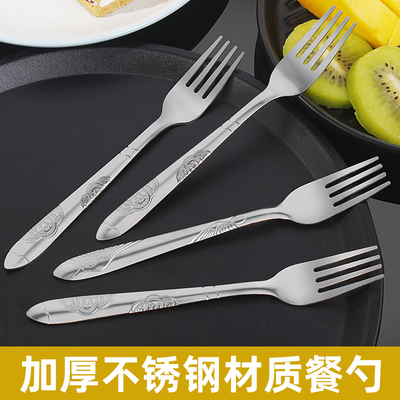 不锈钢加厚叉子家用甜品水果叉西餐牛排叉仙鹤纹沙拉叉子激光logo English | 投诉