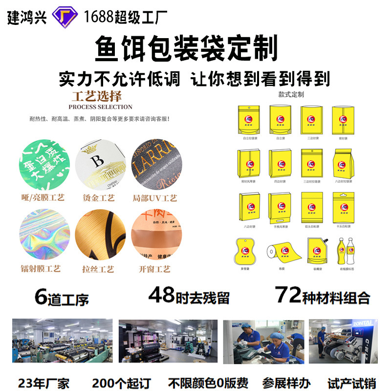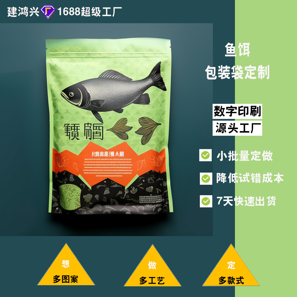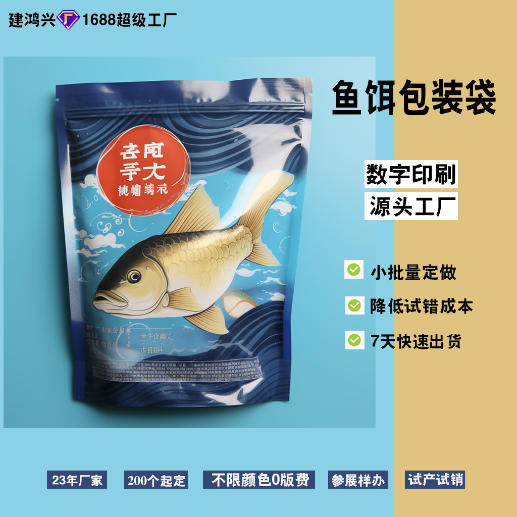 鱼饵包装袋鱼粮鱼食饲料复合材料塑料快速打样小批量三边封袋 投诉