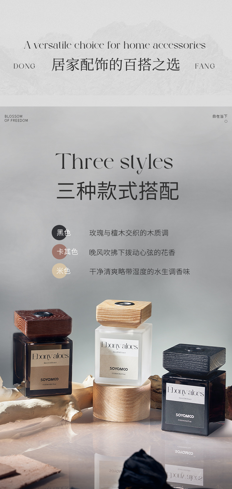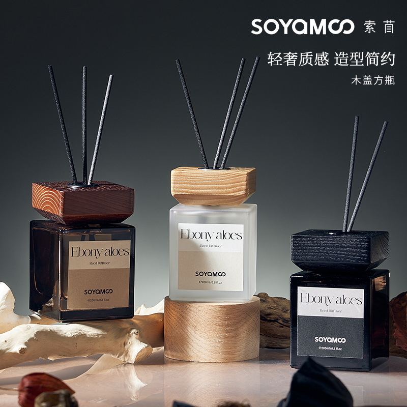 索苜无火藤条精油香薰摆件家用长久香氛套装酒店木盖方瓶香薰批发 English | 投诉