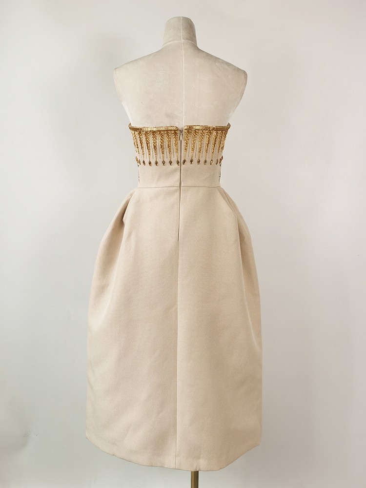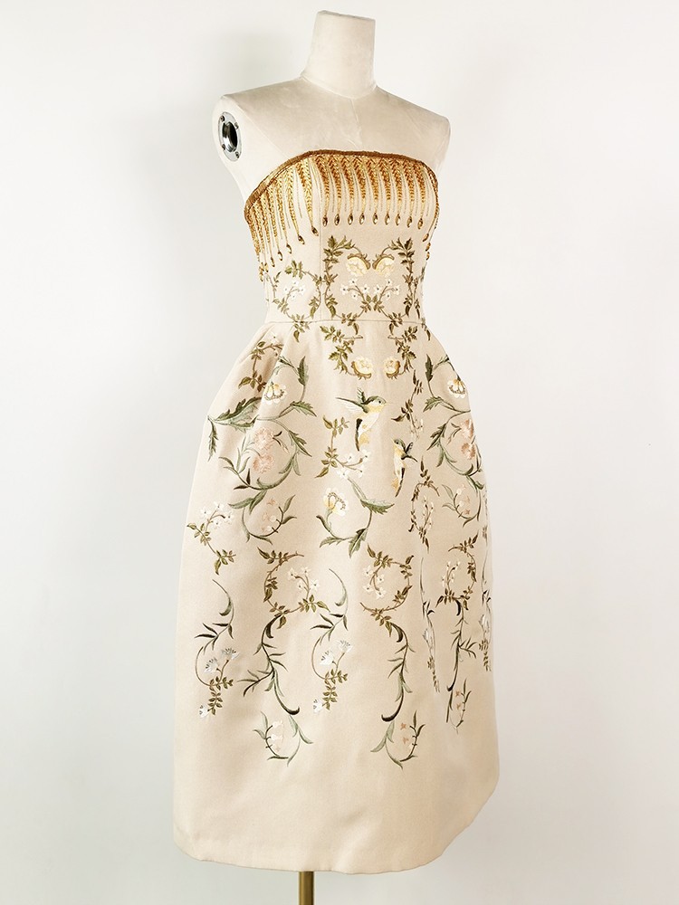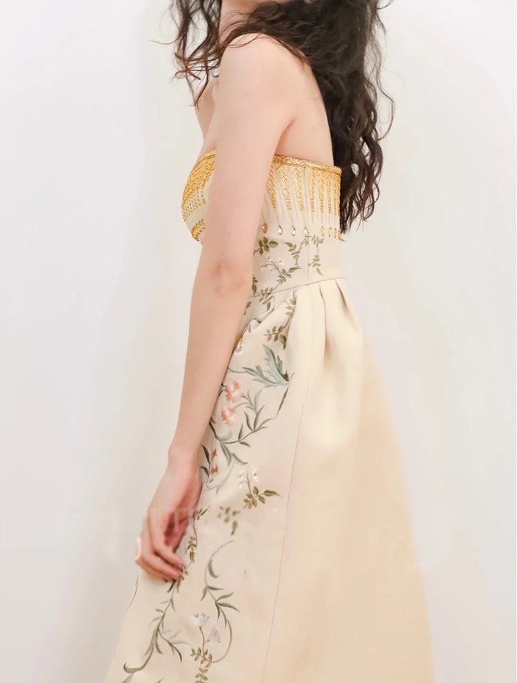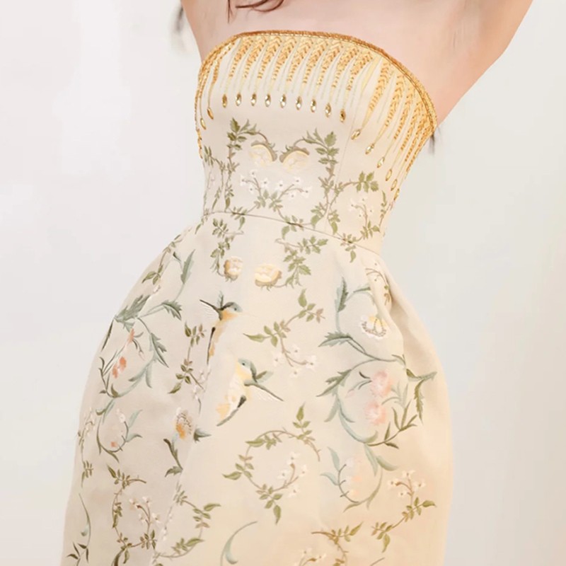 名媛气质礼服设计师修身性感聚会重工抹胸刺绣连衣裙 English | 投诉