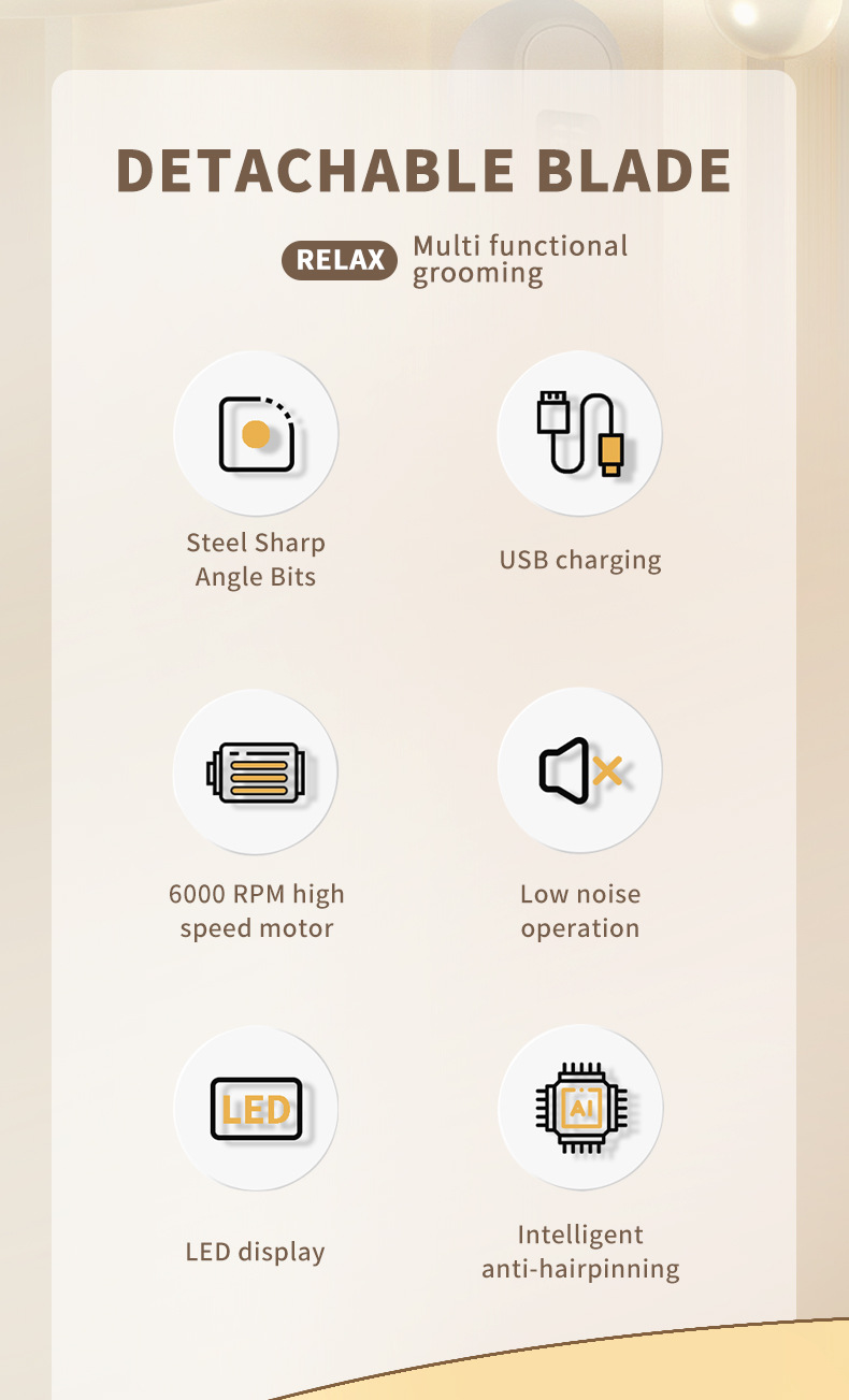 品牌: WAIKIL 电源方式: 充电式 型号: BZ-808-5 刀头材质: 不锈钢 清洁方式: 刀头可拆卸水洗 是否有自动研磨刀头: 否 证书类型: CE 适用人群: 成人 规格: 白色 功率: 3(W) 重量: 0.5 kg/个