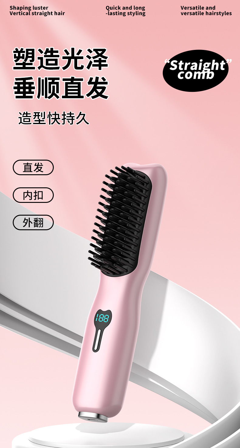 热销无线直发梳不伤发直发器便携烫发器恒温卷发棒电夹板卷发梳