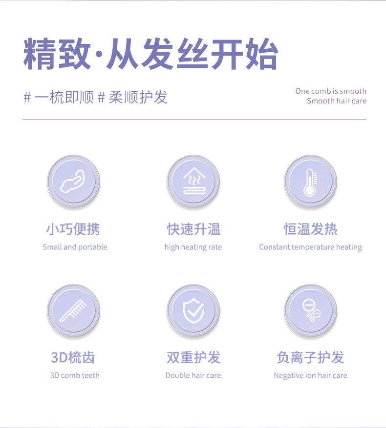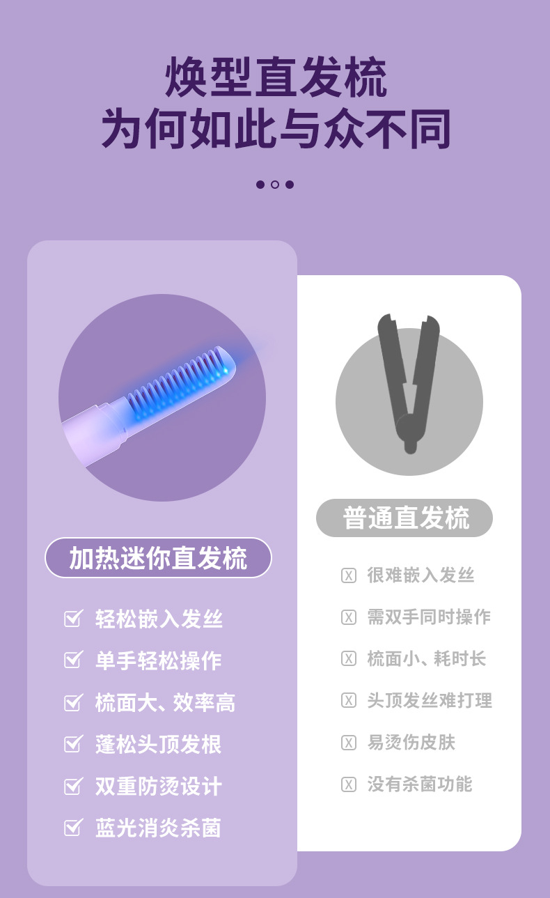 负离子第五代无线直发梳不伤发家用夹板造型梳子护发拉直蓬松器