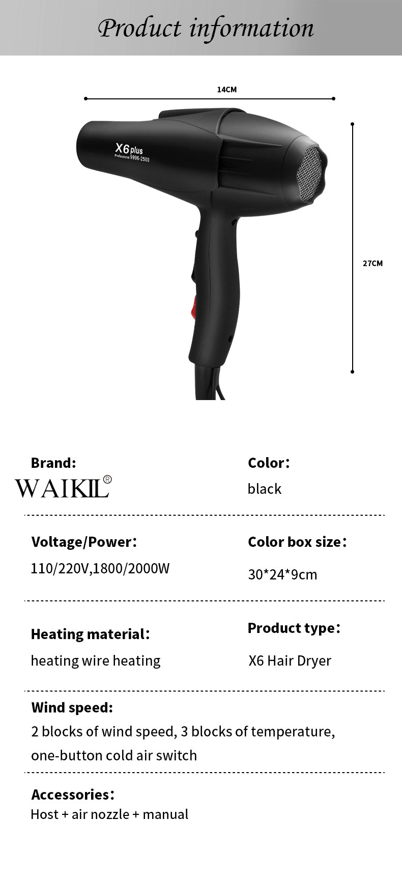 品牌: other/其他 型号: X6 外壳材质: ABS 电机类型: 有刷电机 额定功率: 1700(W) 温度调节: 冷/热风档 货号: X6 手柄折叠: 不可折叠 风嘴样式: 单集风嘴 过热保护: 有 重量: 1.0 kg/件