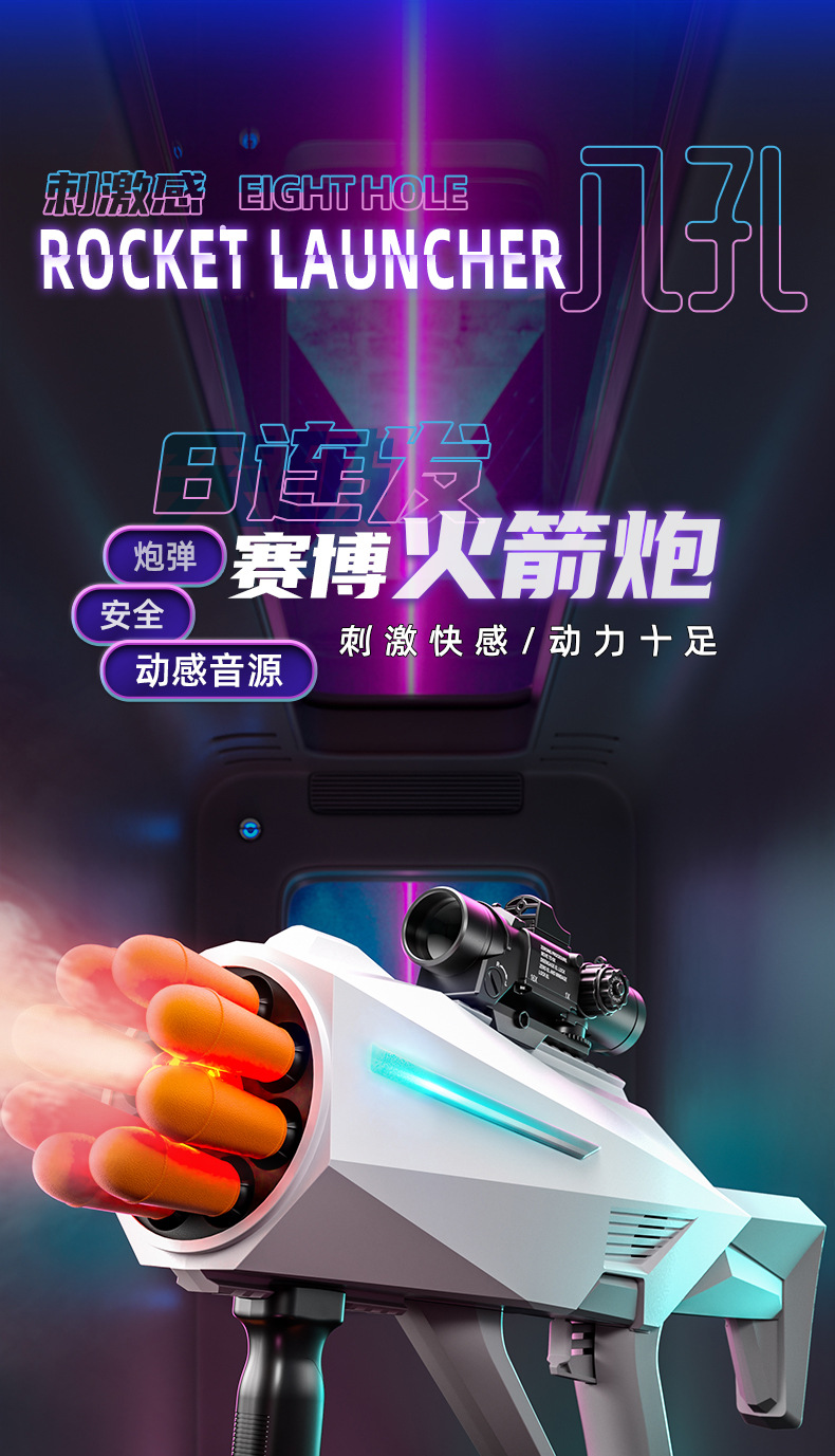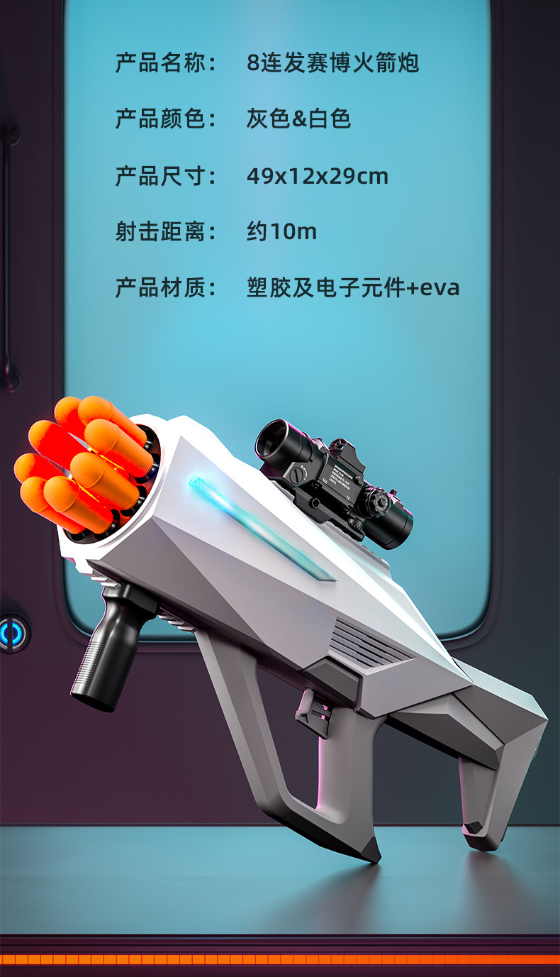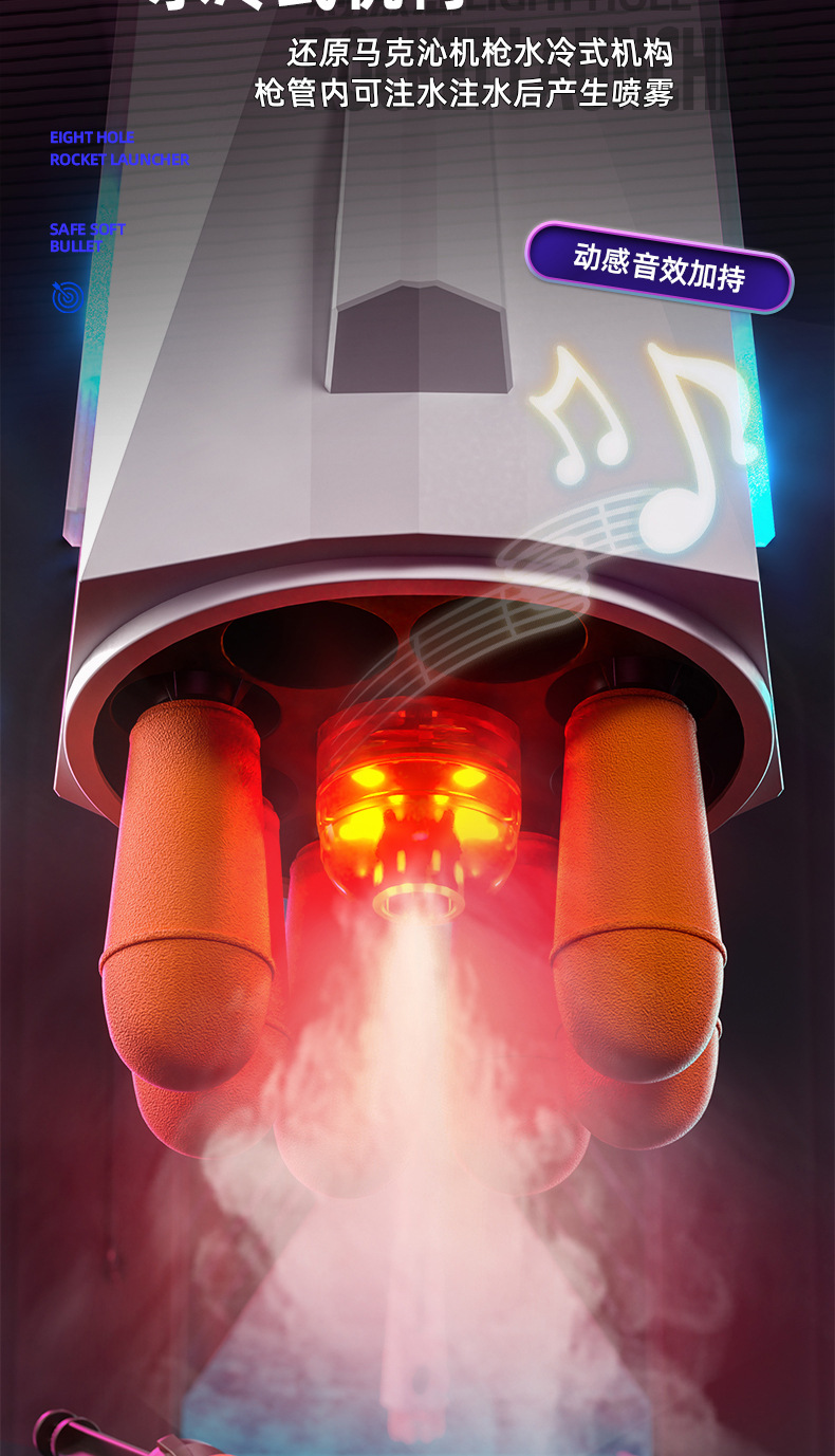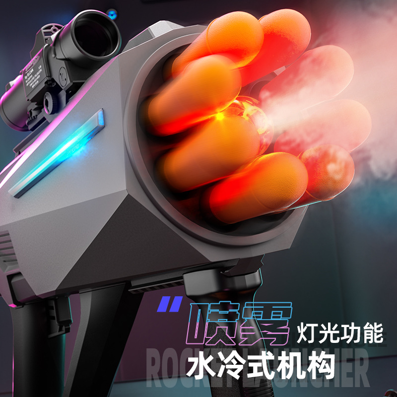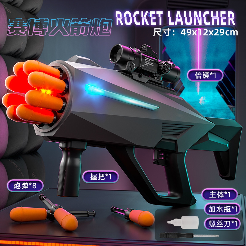 八连发火箭炮超大号弹软弹枪赛博朋克火箭筒喷雾可发射导弹玩具枪