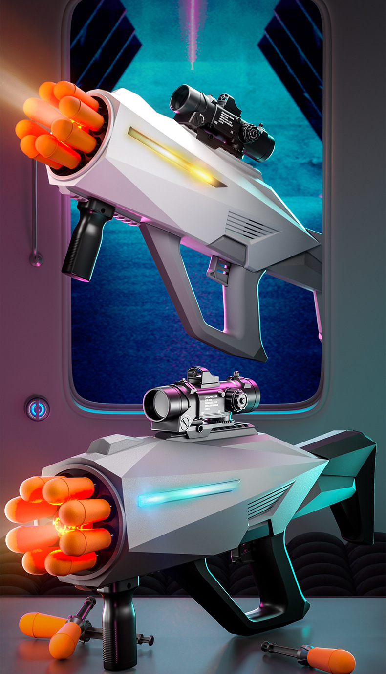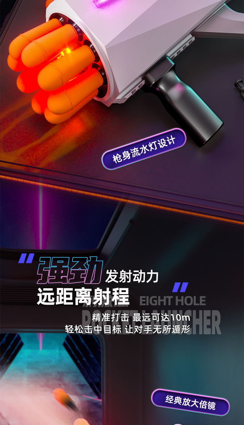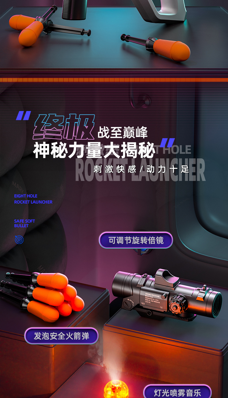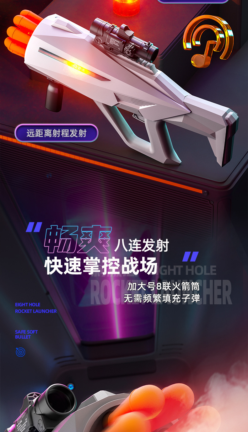 八连发火箭炮超大号弹软弹枪赛博朋克火箭筒喷雾可发射导弹玩具枪
