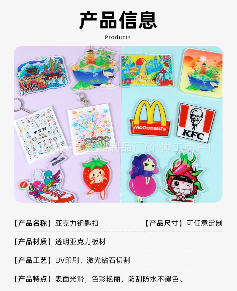 亚克力钥匙扣定制企业logo卡通文创纪念应援钥匙链diy挂件定做