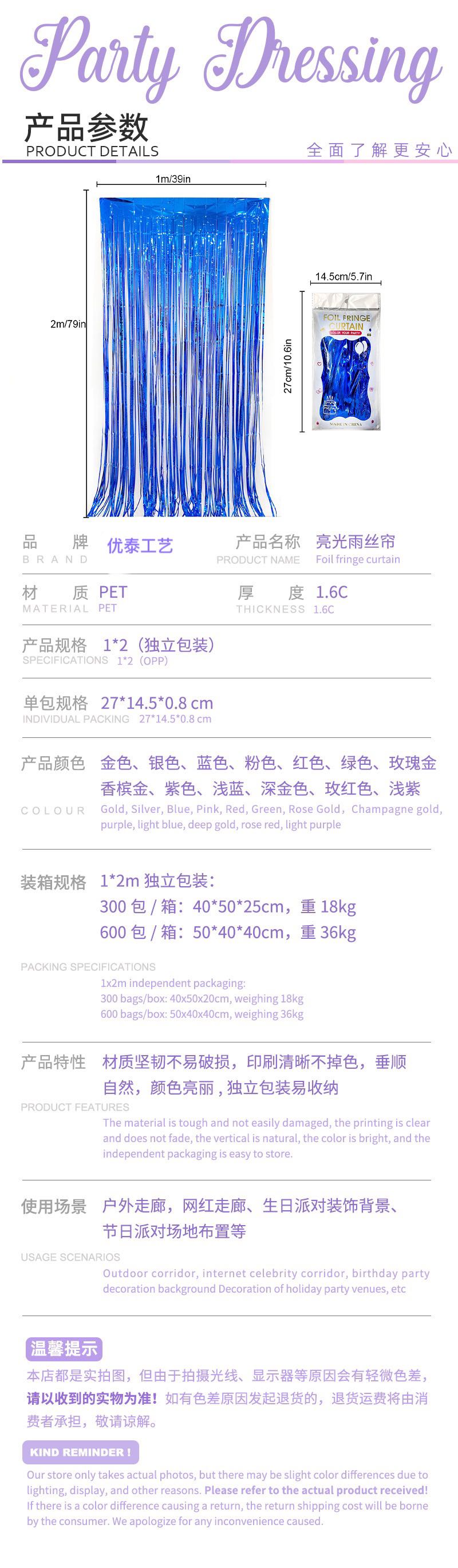 跨境电商派对亮光雨丝帘 1*2m English | 投诉