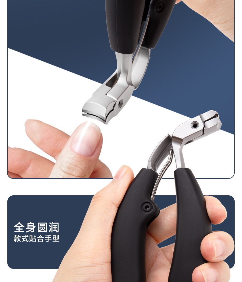跨境新款指甲刀弯头大开口二次开刃指甲钳防飞溅收纳甲屑指甲剪刀 投诉