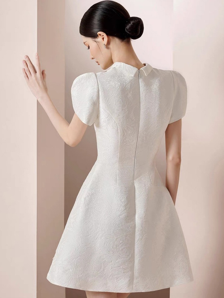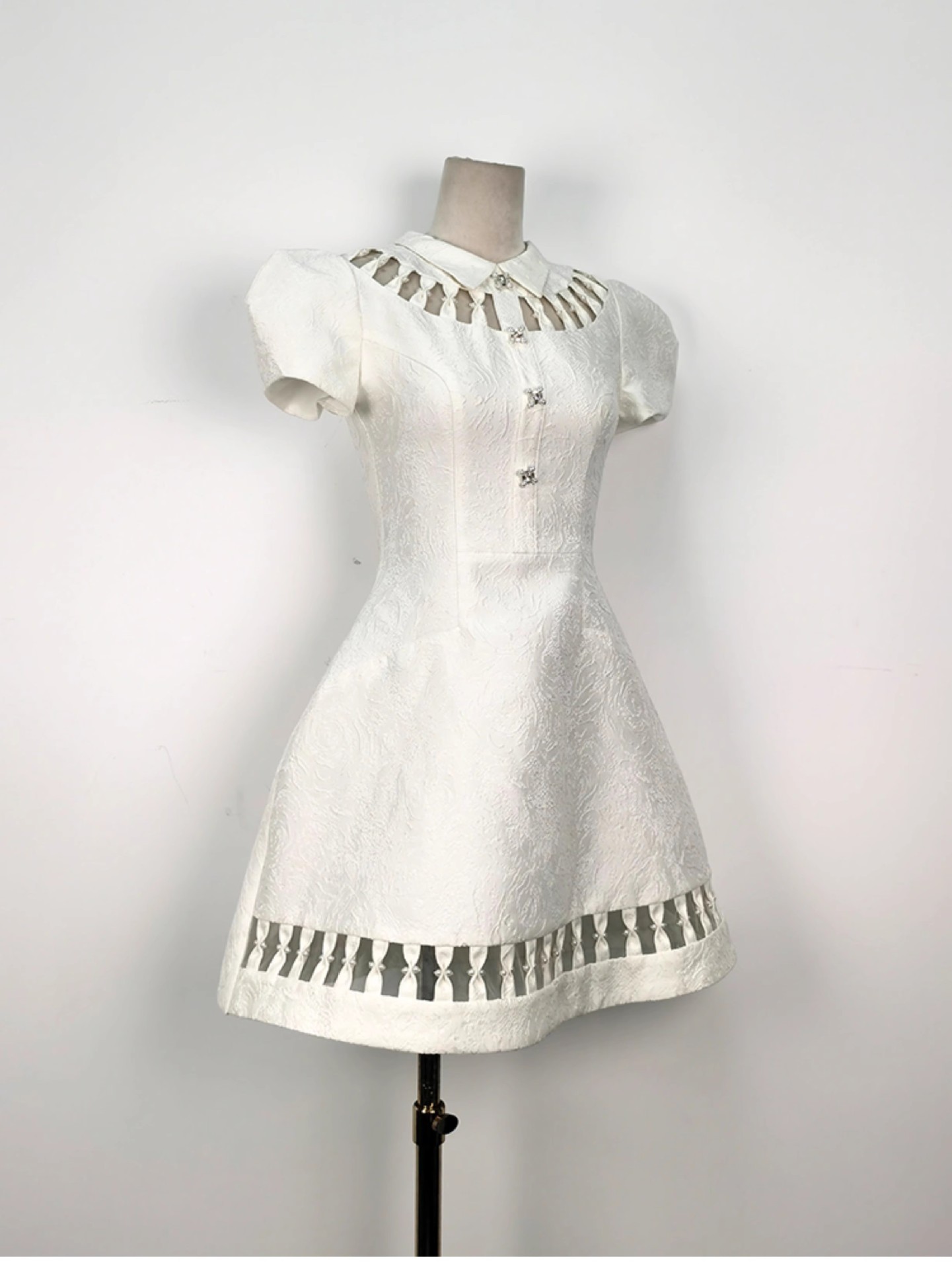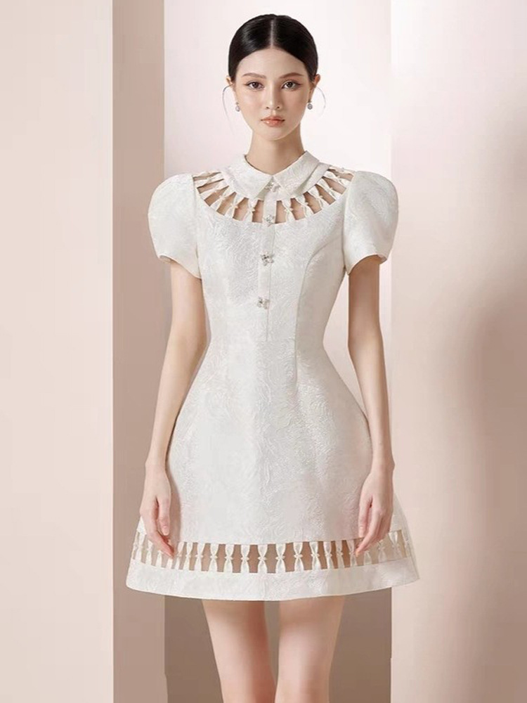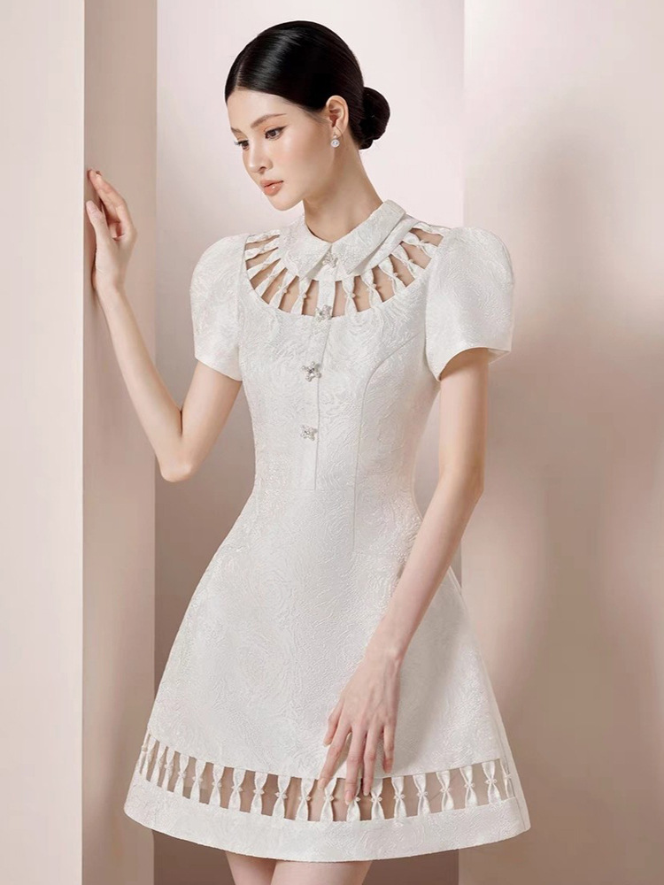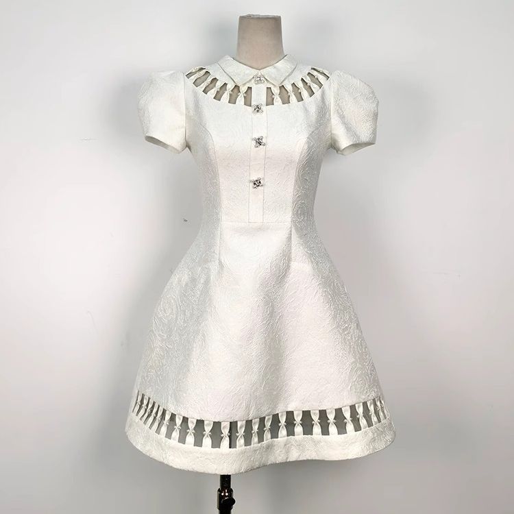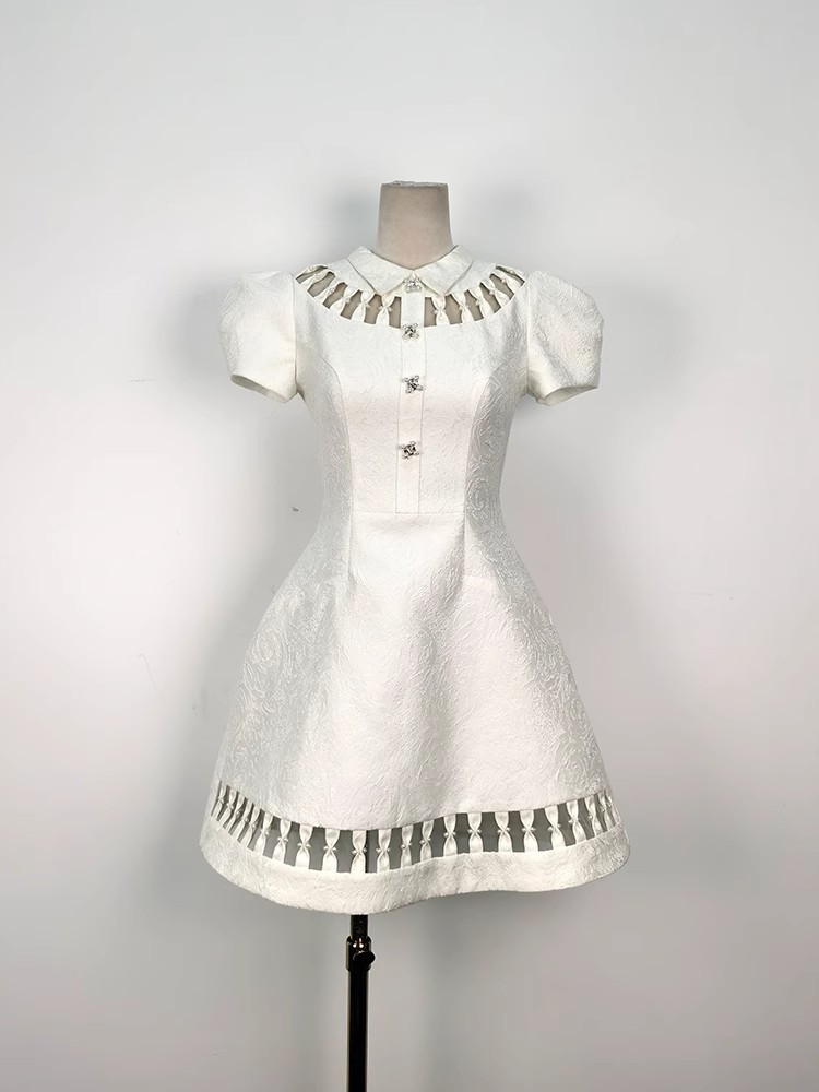 重工镂空蝴蝶结钻扣裙收腰显瘦提花连衣裙 English | 投诉