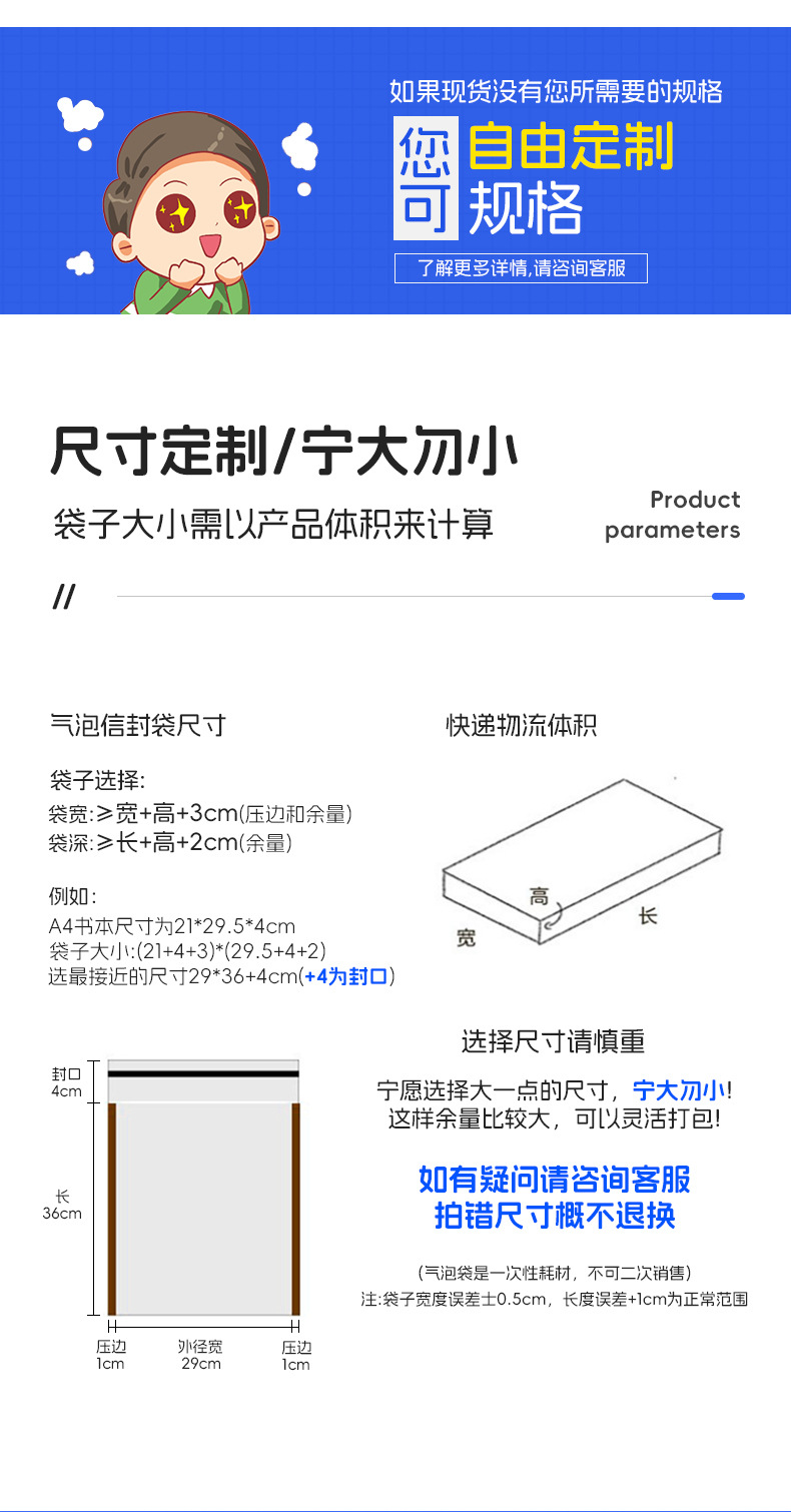 定制哑光膜共挤膜气泡袋珠光膜泡泡袋防水镀铝膜快递气泡信封袋 投诉