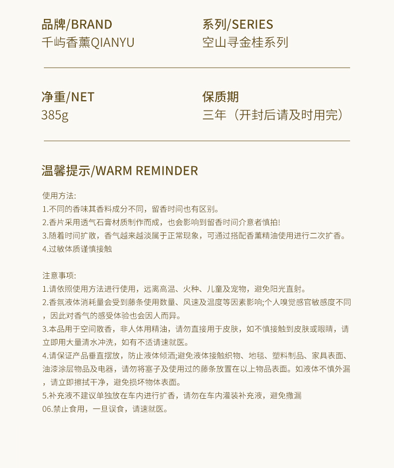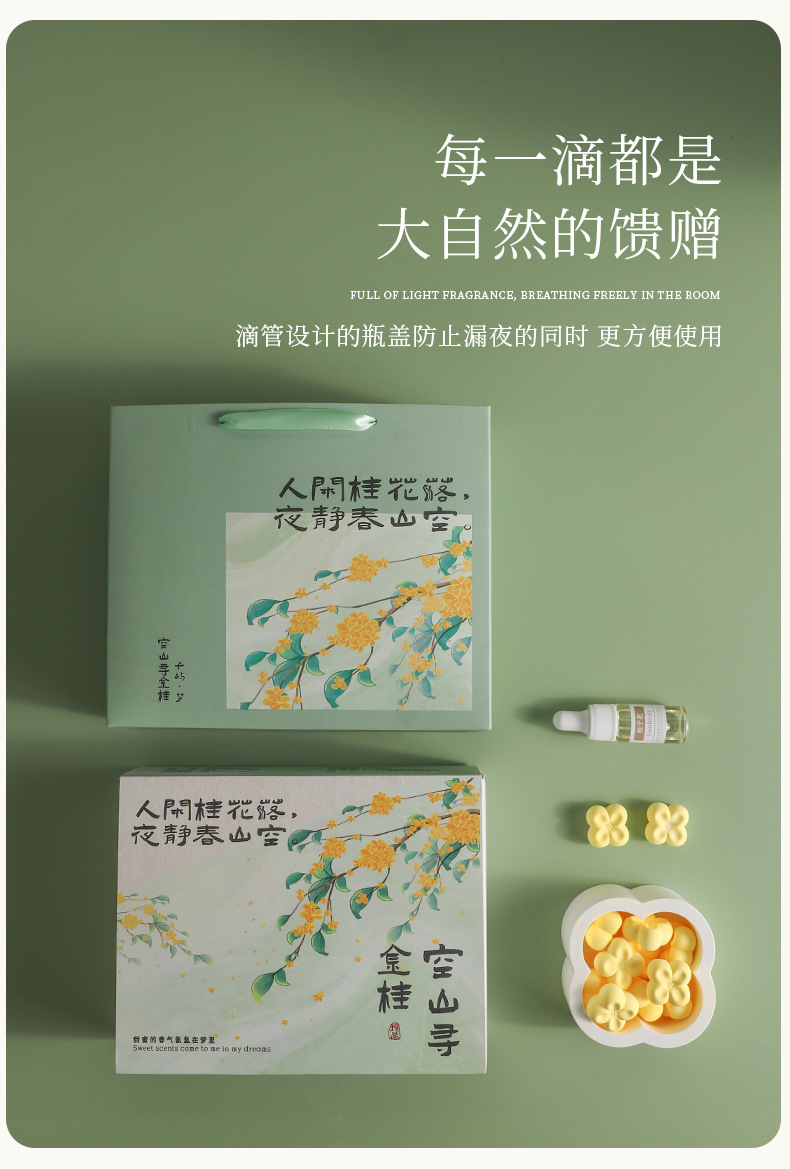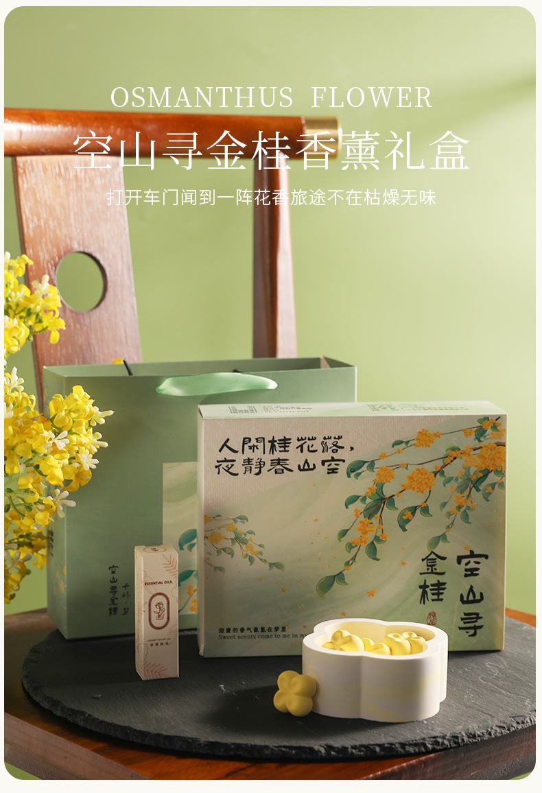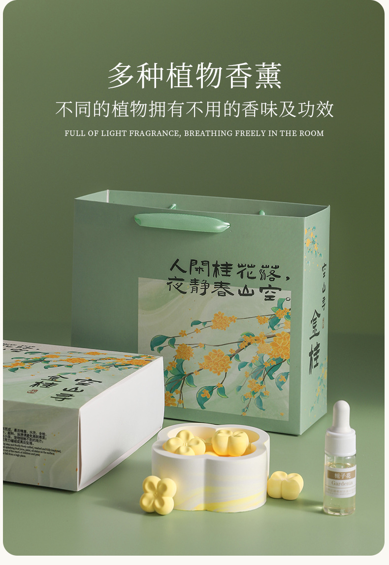 桂花香薰礼盒居家卧室除臭延长中式扩香石膏节日送礼无火香薰晶石 English | 投诉