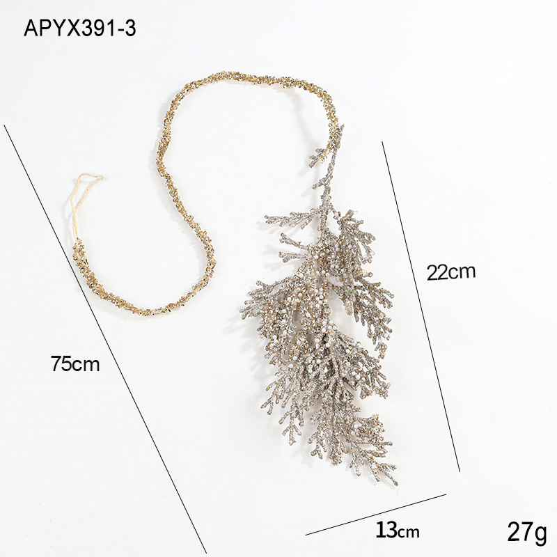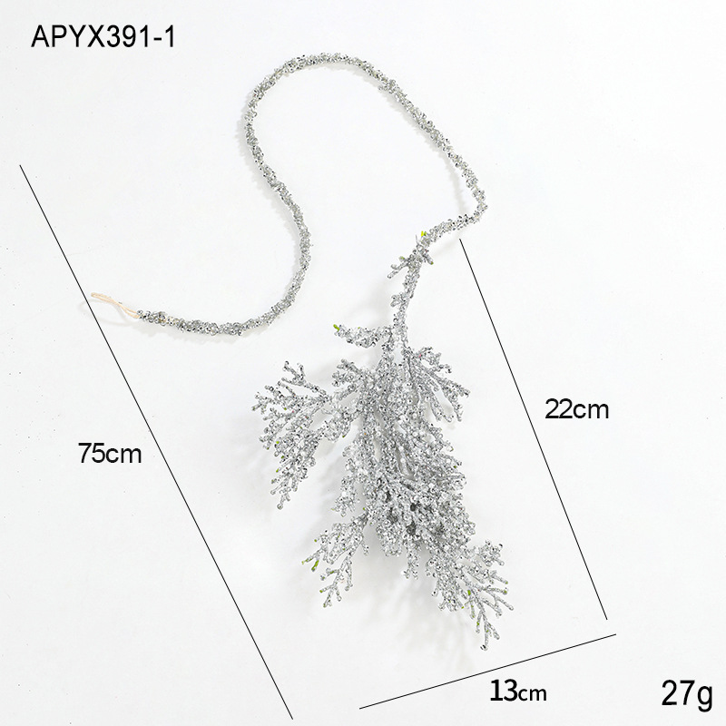 货号: APYX391 材质: 塑料 颜色: 银色粘粉挂绳树叶,金色粘粉挂绳树叶,香槟 是否专利货源: 否 品牌: 港恒 是否IP授权: 否 风格: 现代简约,现代艺术 重量: 0.1 kg/个