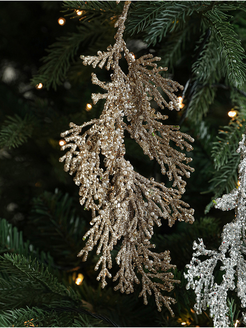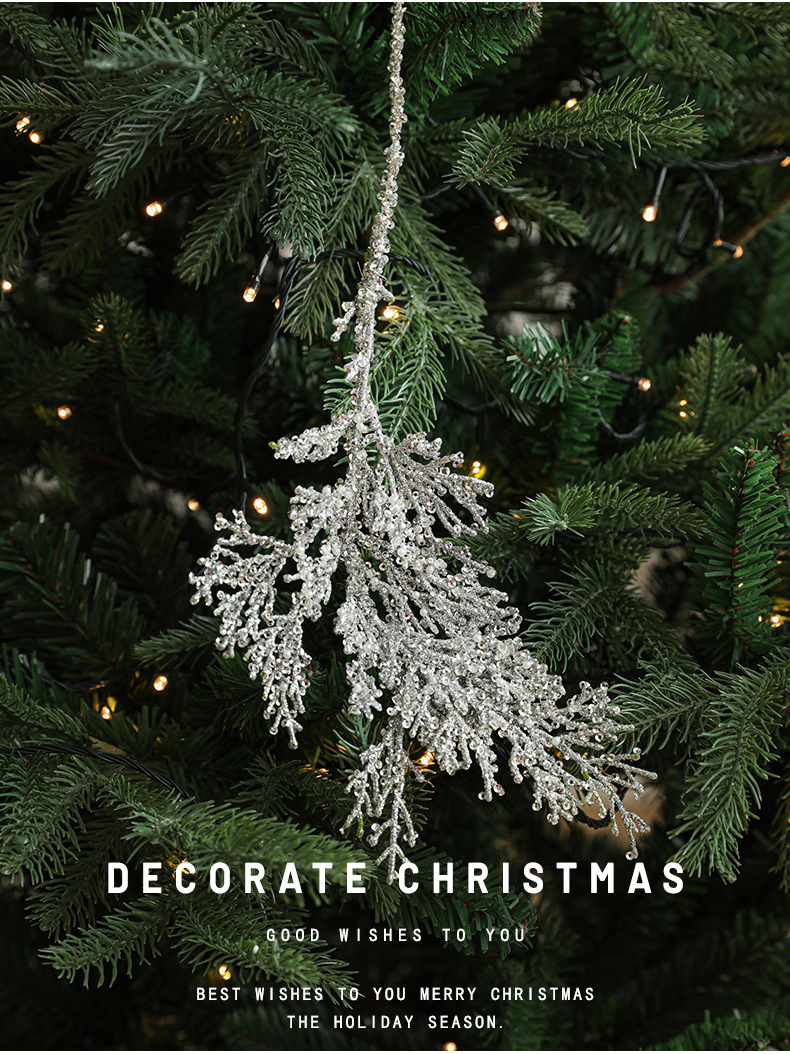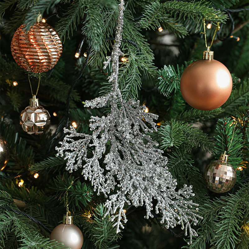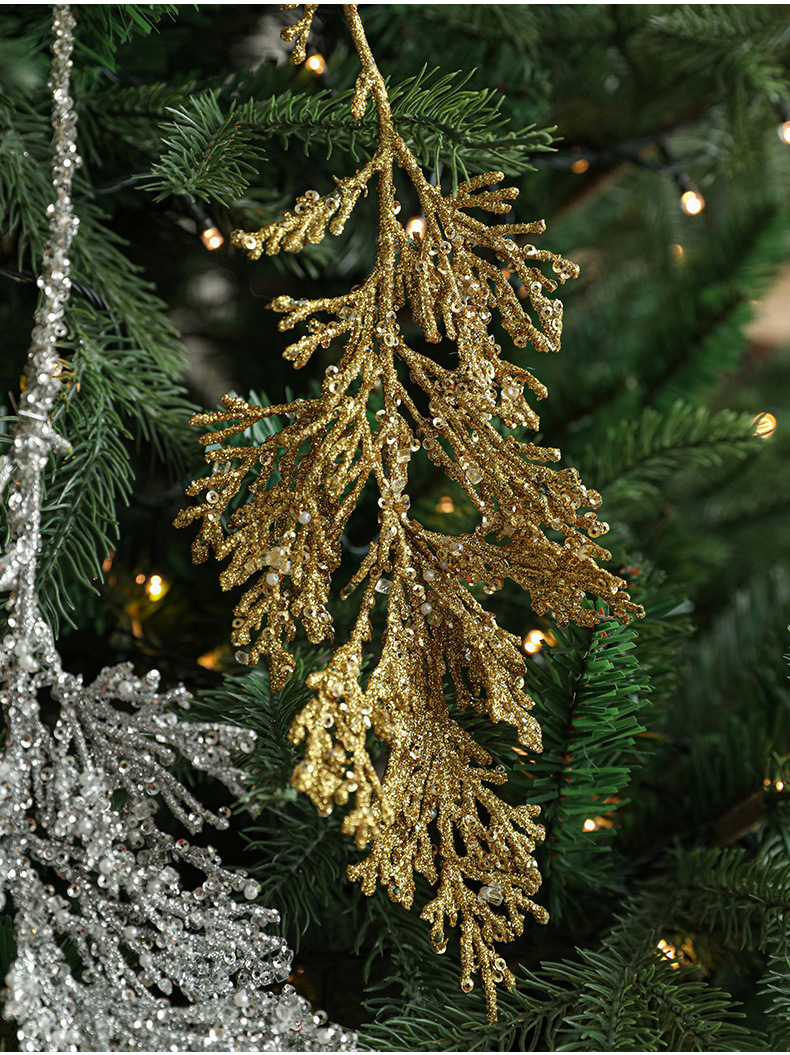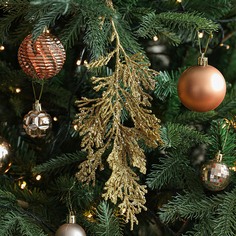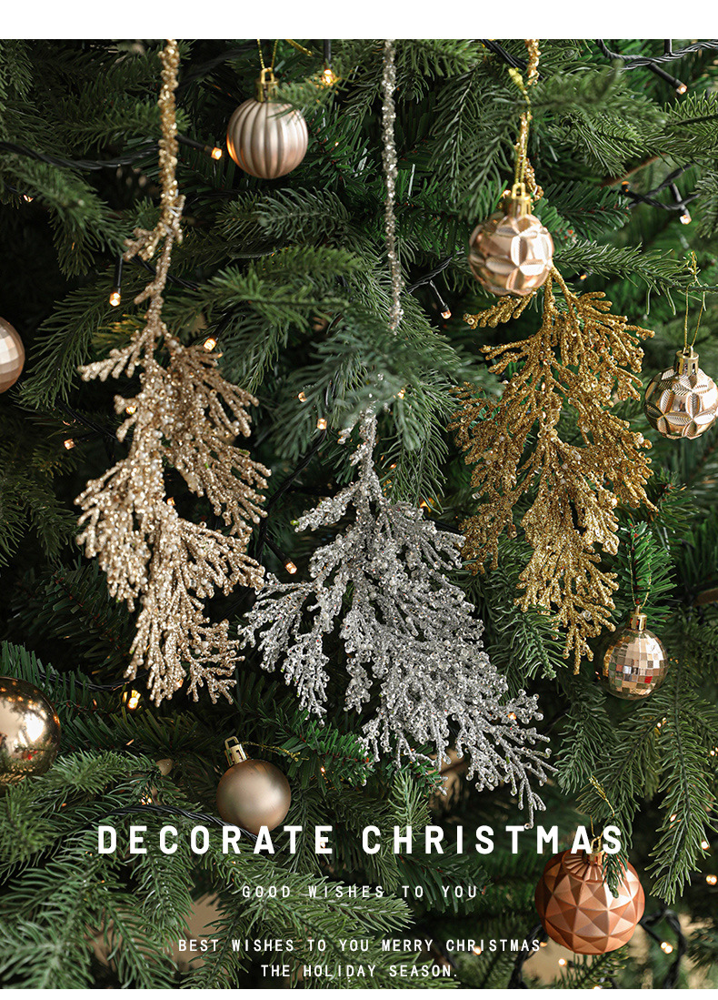 跨境新品塑料粘粉柏树叶创意异形挂件圣诞树圣诞节装饰挂饰现货 English | 投诉