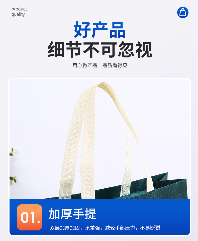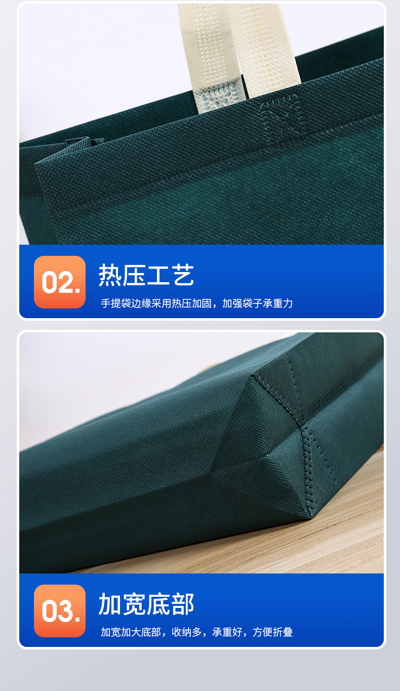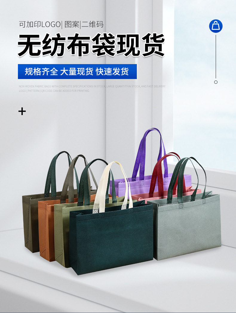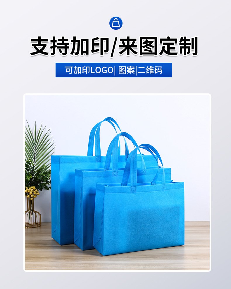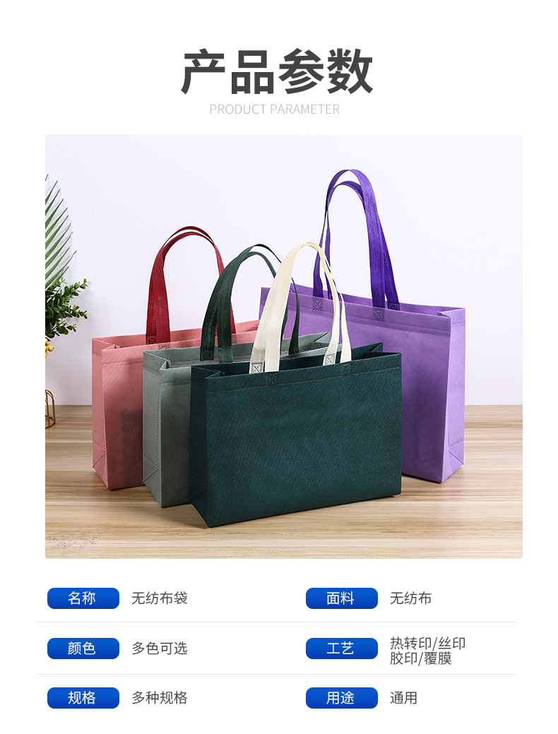 材质: 无纺布覆膜 定制: 定制客户logo 用途: 通用 印刷工艺: 丝印 手感: 耐磨耐用 风格: 简约 重量: 0.02 kg/个 装箱信息:长宽高:50X55X60cm 装箱重量: 30KG 装箱数量:1500pcs