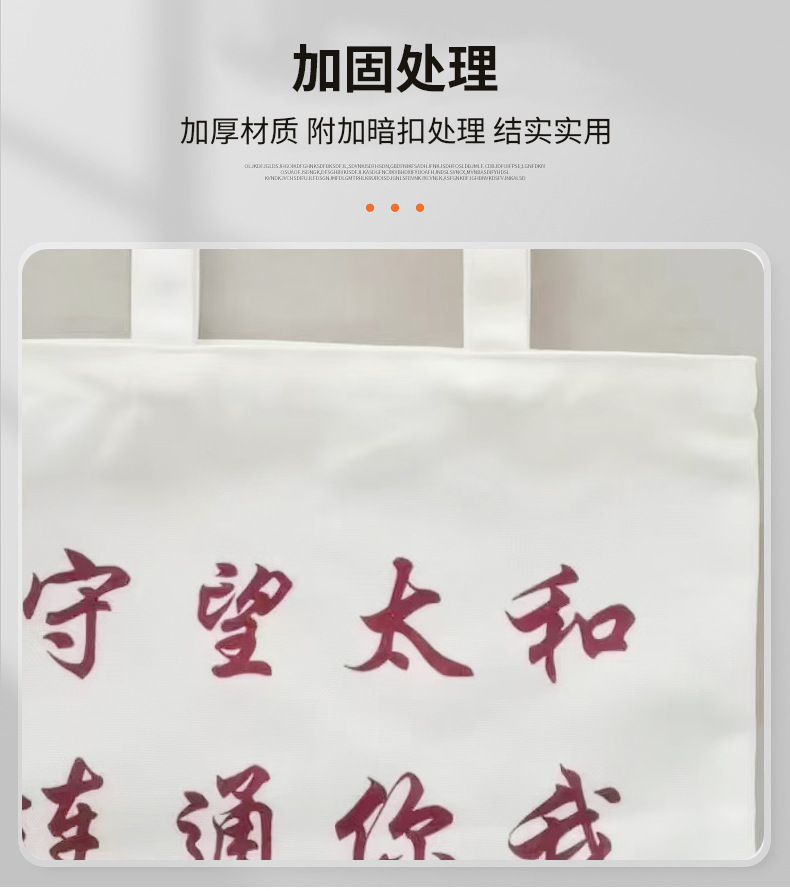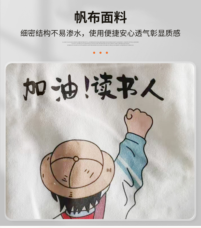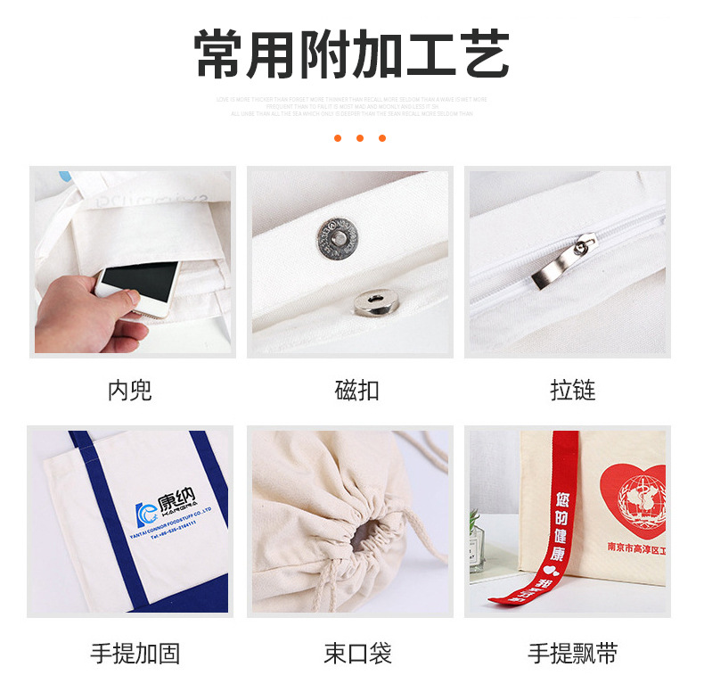 材质: 帆布 用途: 通用 定制: 定制客户logo 印刷工艺: 热转印 数码印 手感: 耐磨耐用 风格: 简约 重量: 0.2 kg/个 装箱信息:长宽高:50X55X60cm 装箱重量: 30KG 装箱数量:120pcs