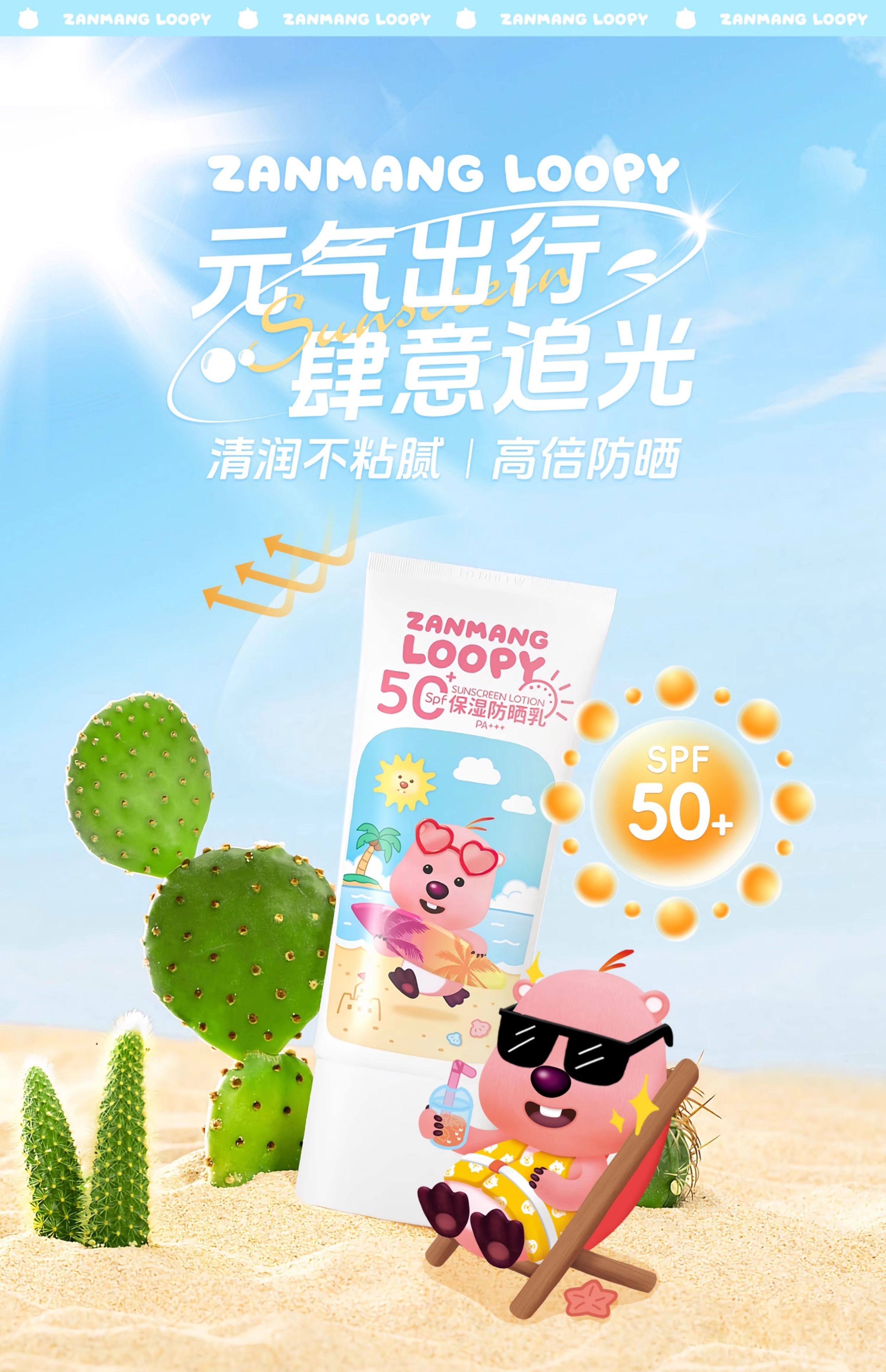 包邮!运动小子青少年学生夏季保湿防晒乳护肤50ml zanmang loopy