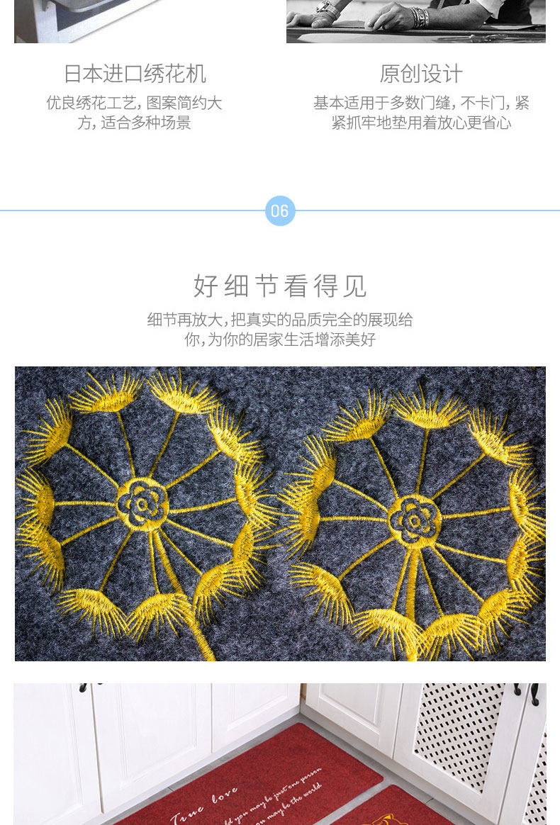 • 那集家居主营室内门垫,浴室垫,厨房垫,客卧地毯,室外镂空垫,瑜伽垫,儿童爬行垫,穆斯林朝拜地垫等各品类地垫。欢迎新老客户来店咨询洽谈。