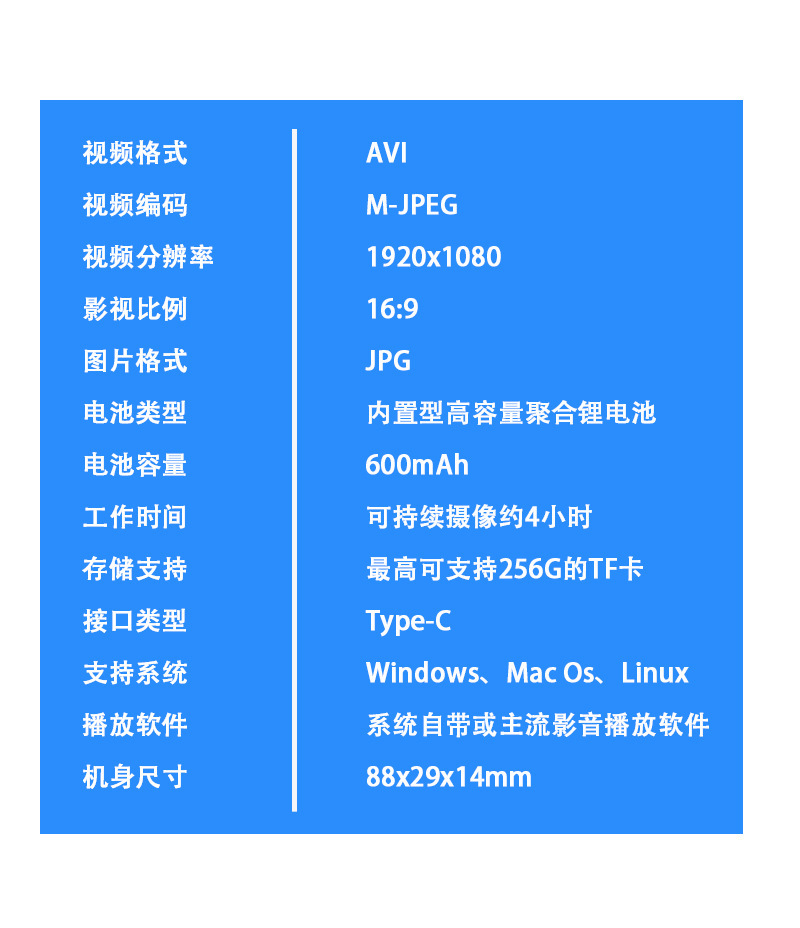 出厂标配:相机+数据线+支架+说明书