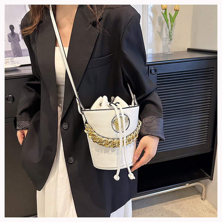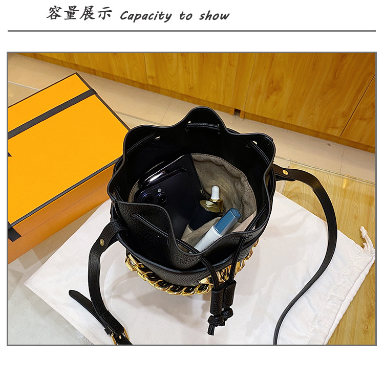 2023新款水桶包休闲时尚包包韩版纯色手提女包链条单肩斜挎包潮