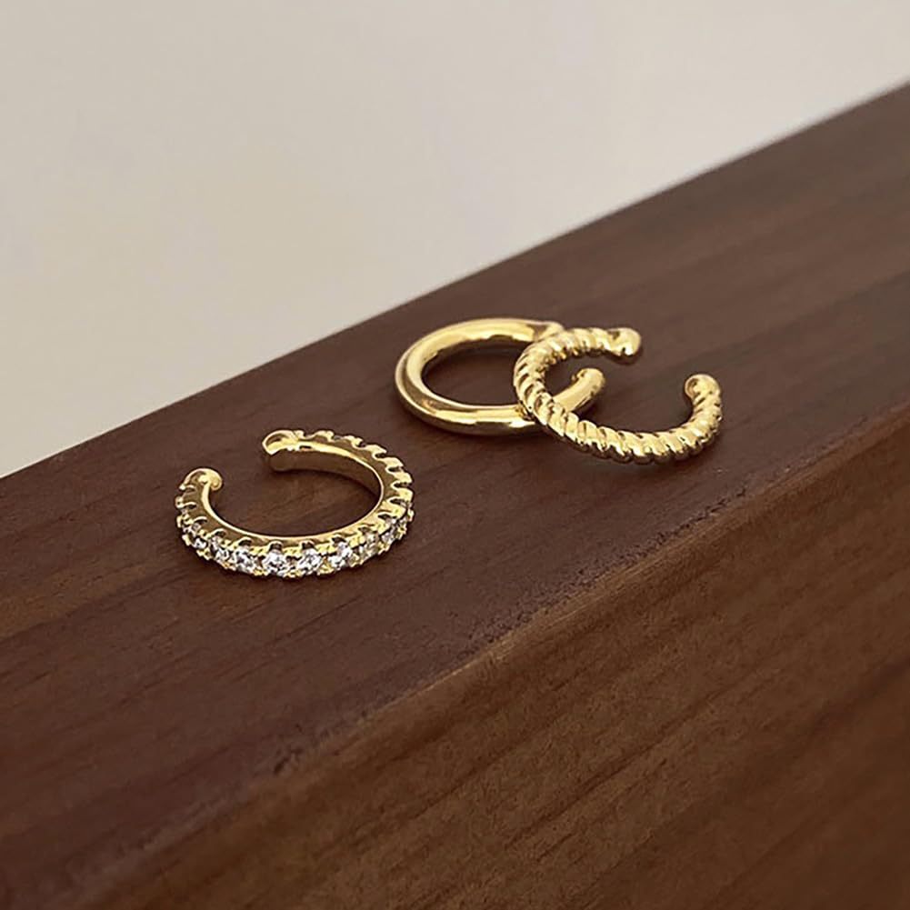 黄铜真金电镀 欧美跨境热销 简约小众设计镶锆石光面无耳洞耳夹 English | 投诉