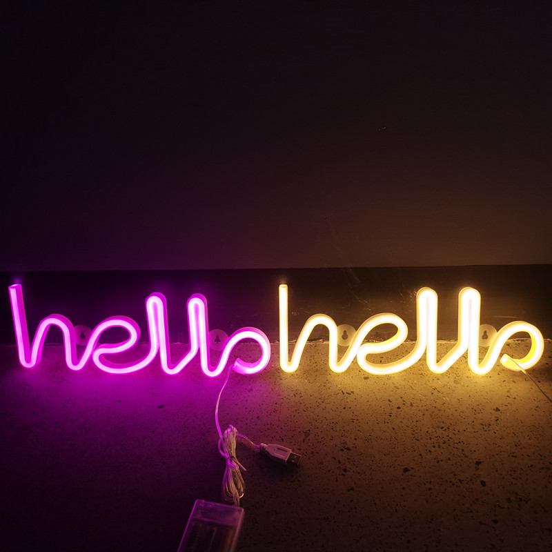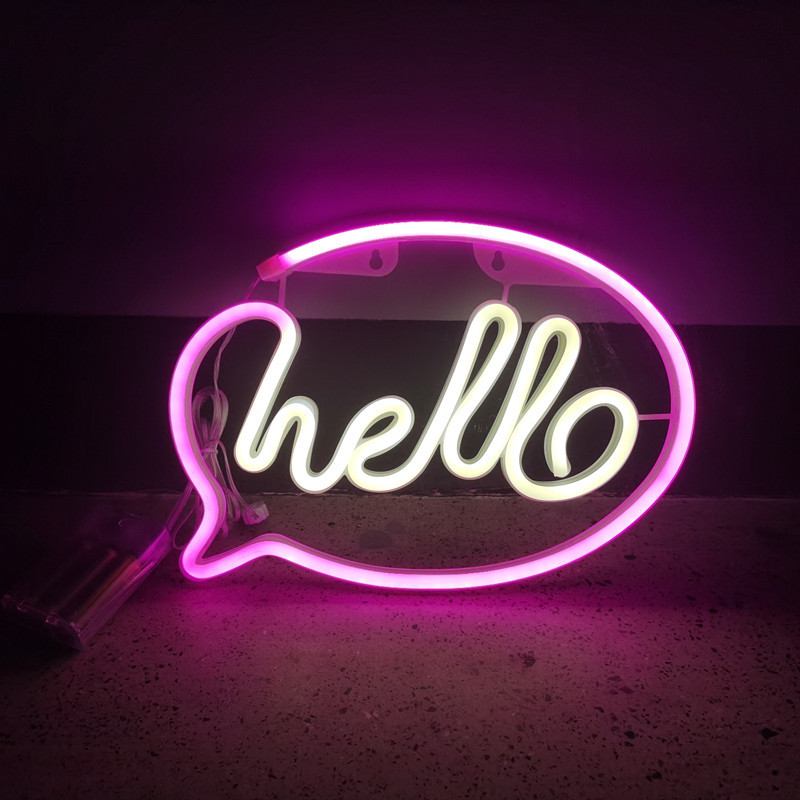 跨境led霓虹灯hello彩灯造型灯创意家居挂墙装饰圣诞节日布置灯饰