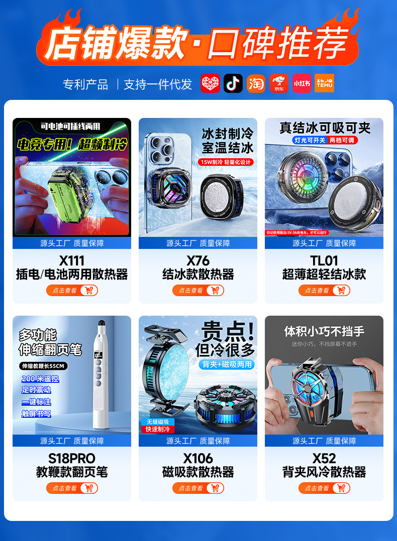 新款X111半导体手机散热器噪音小磁吸无线电池款制冷降温游戏外设 投诉