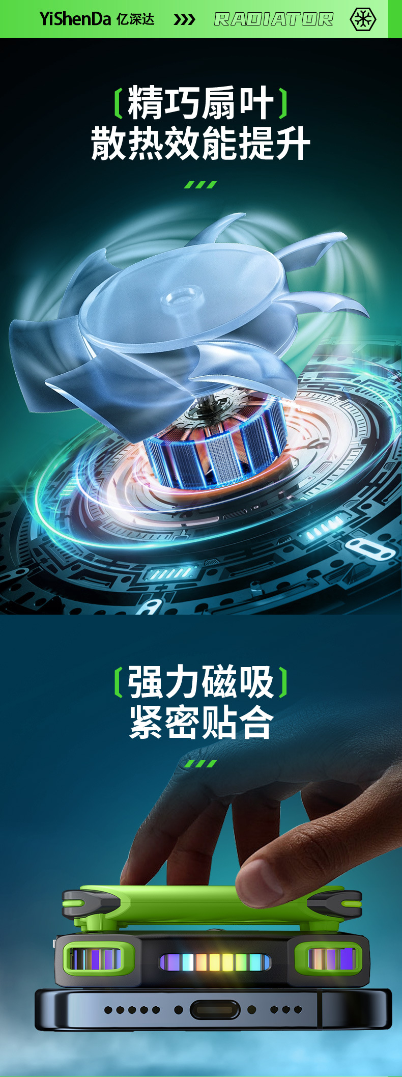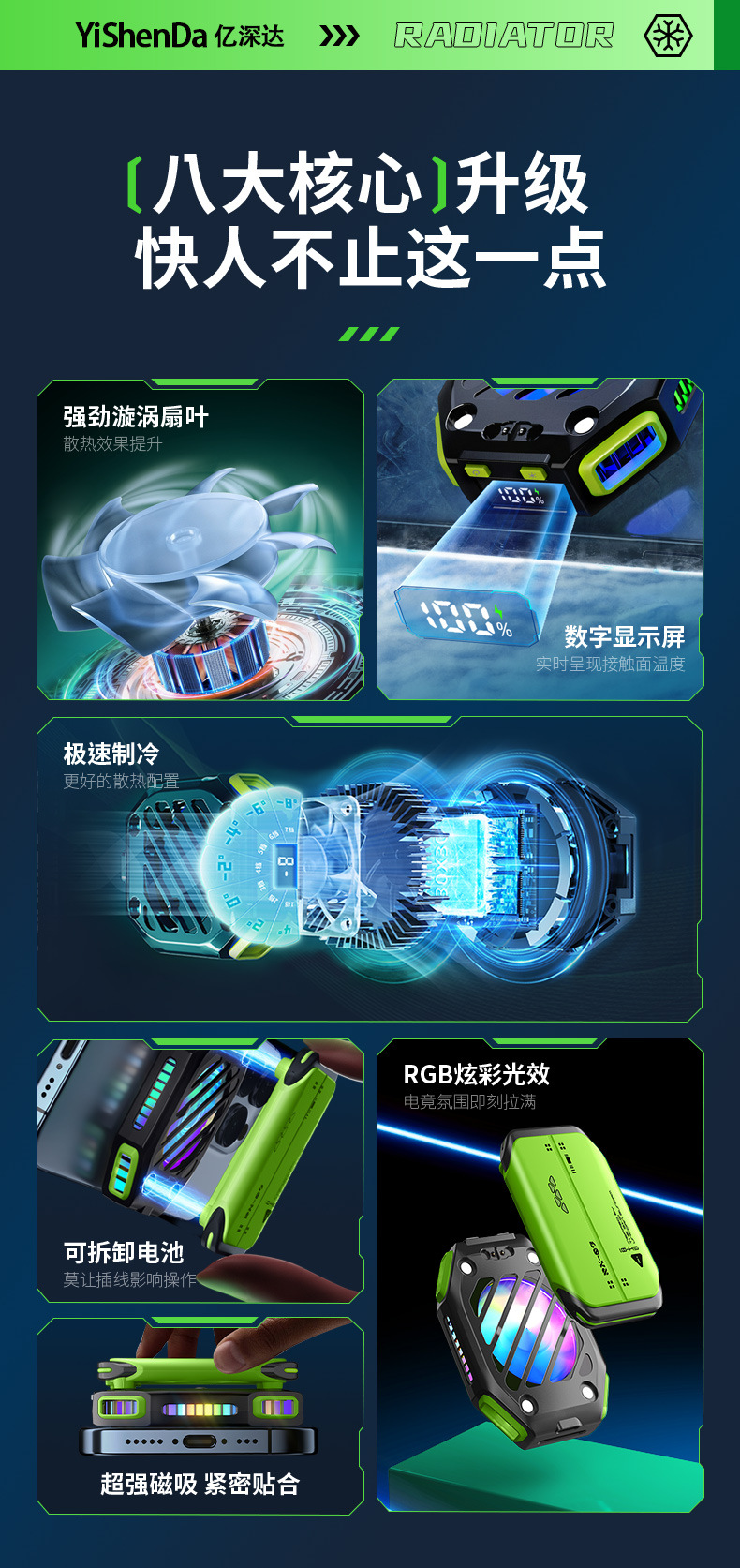 新款X111半导体手机散热器噪音小磁吸无线电池款制冷降温游戏外设