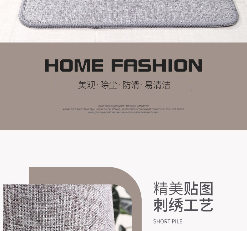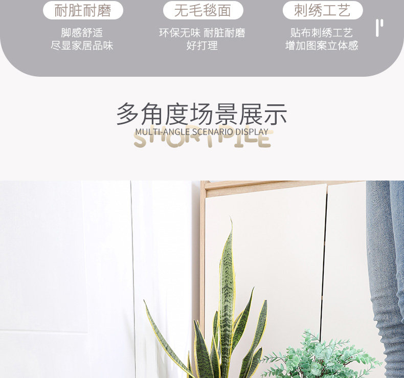• 那集家居主营室内门垫,浴室垫,厨房垫,客卧地毯,室外镂空垫,瑜伽垫,儿童爬行垫,穆斯林朝拜地垫等各品类地垫。欢迎新老客户来店咨询洽谈。