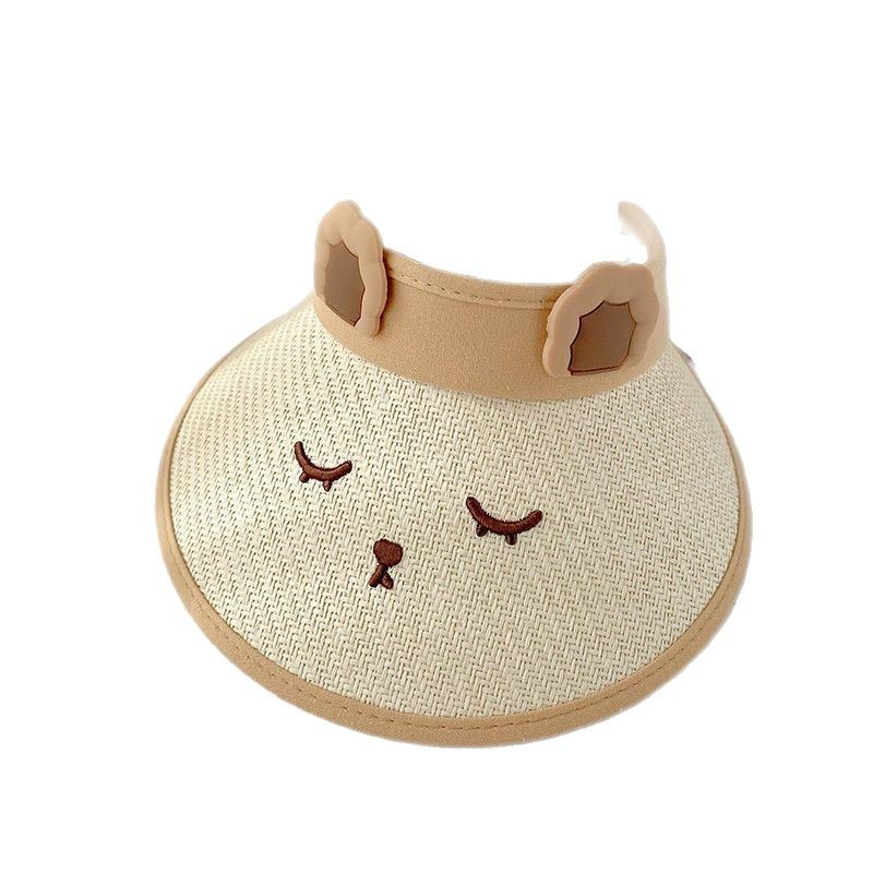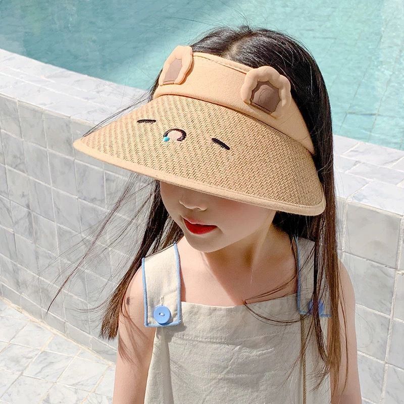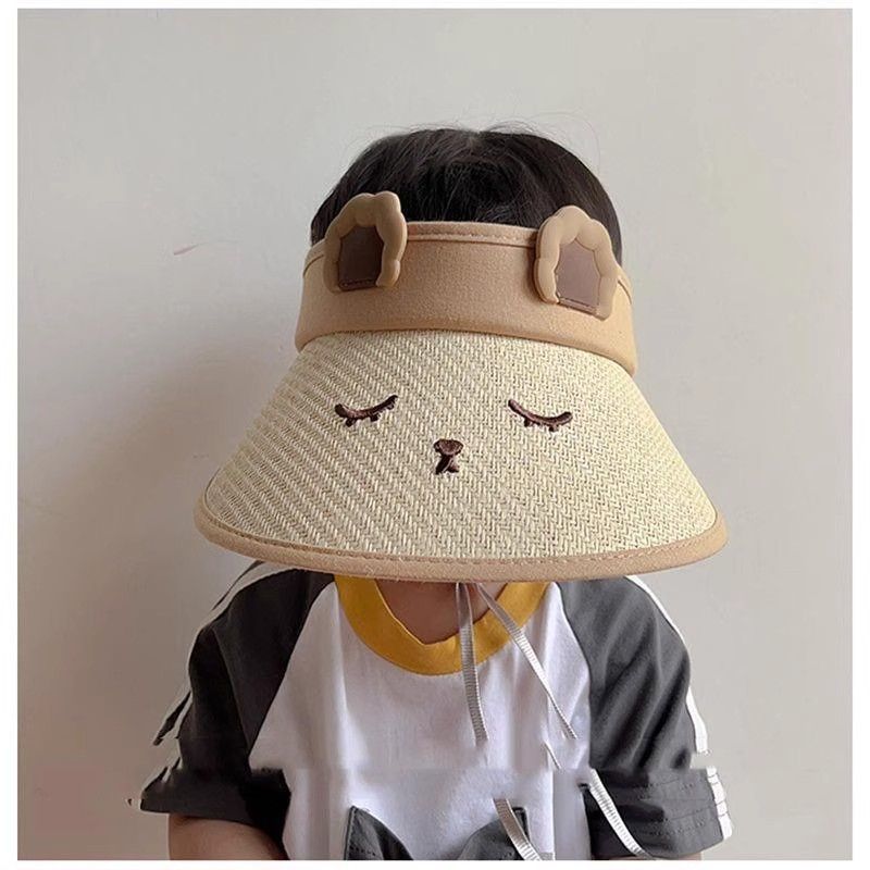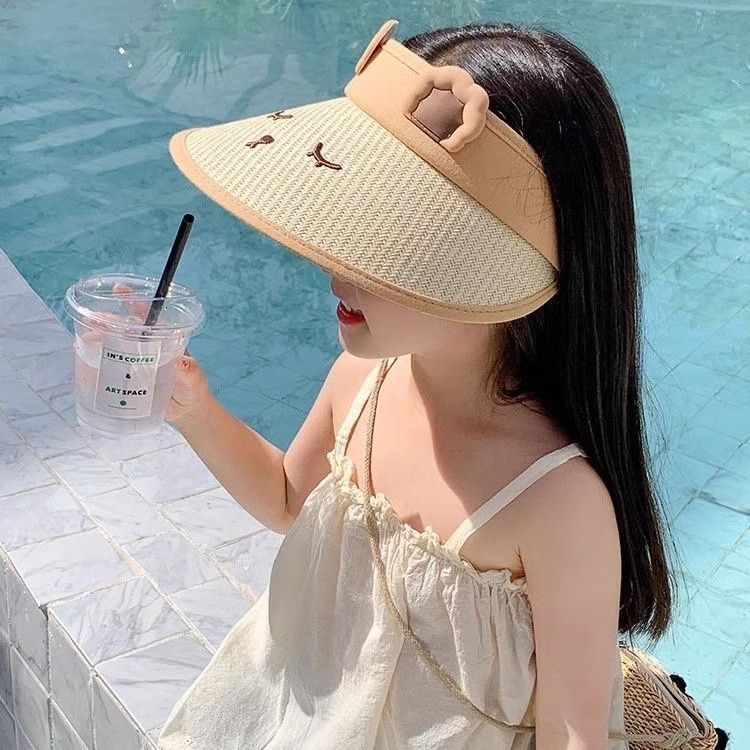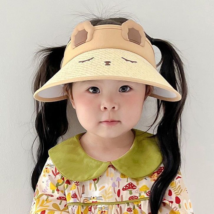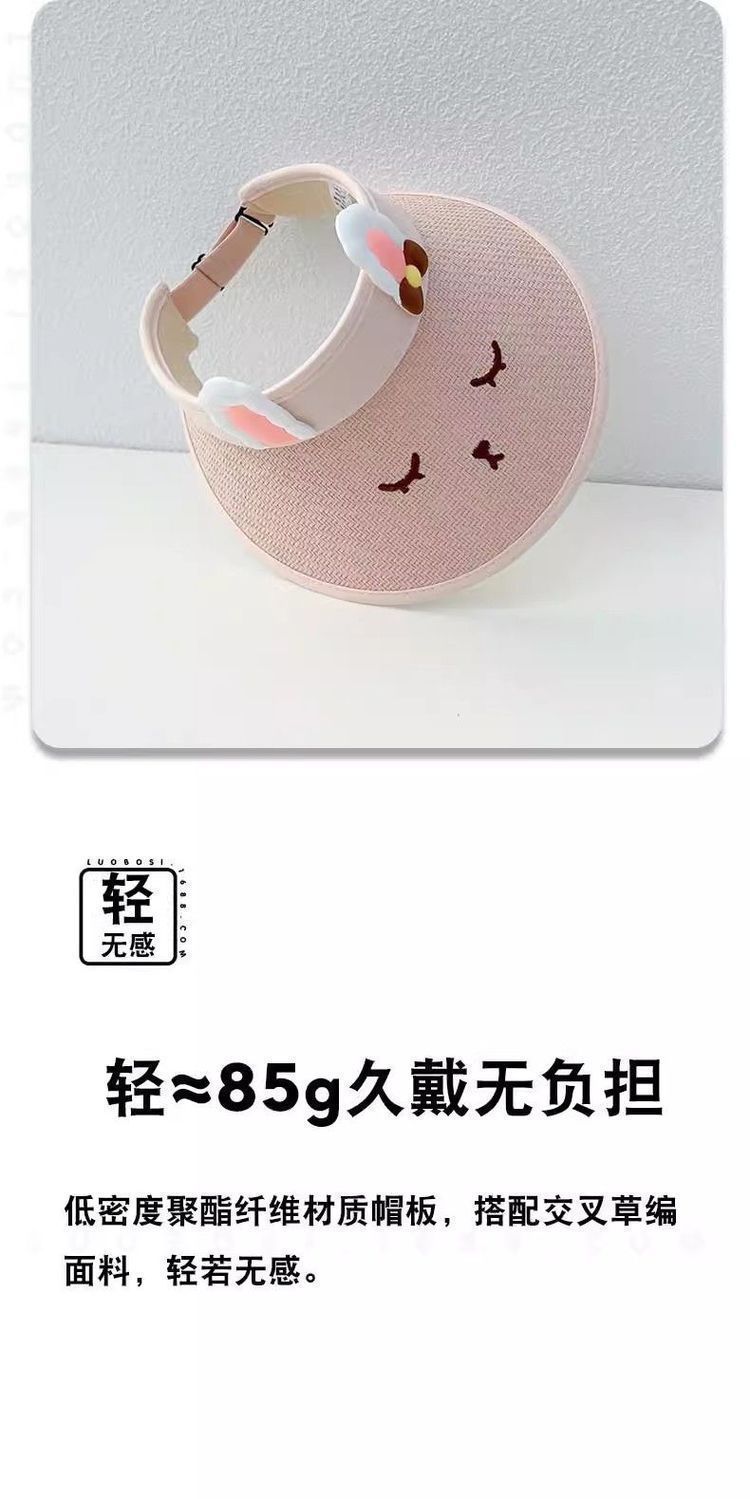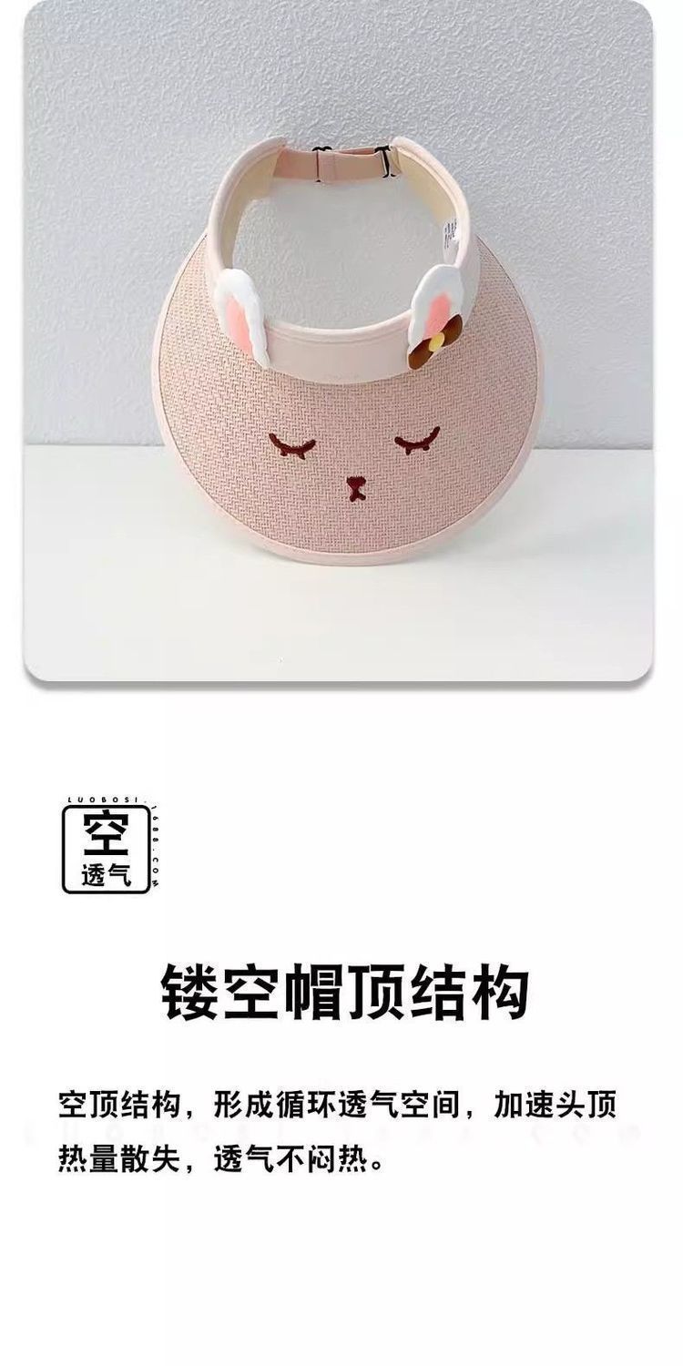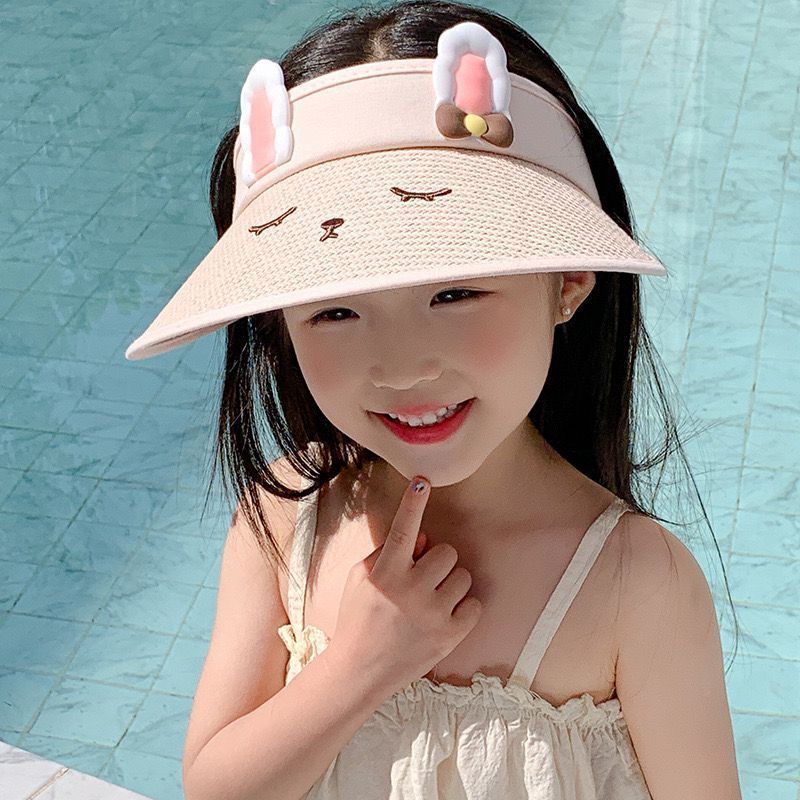 儿童草编空顶帽小兔可爱透气防紫外线男女宝宝太阳帽户外沙滩