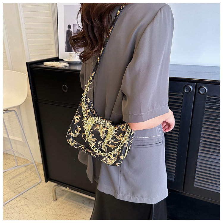 2023新款女包链条斜挎包夏季单肩手提腋下包外贸跨境印花彩绘涂鸦