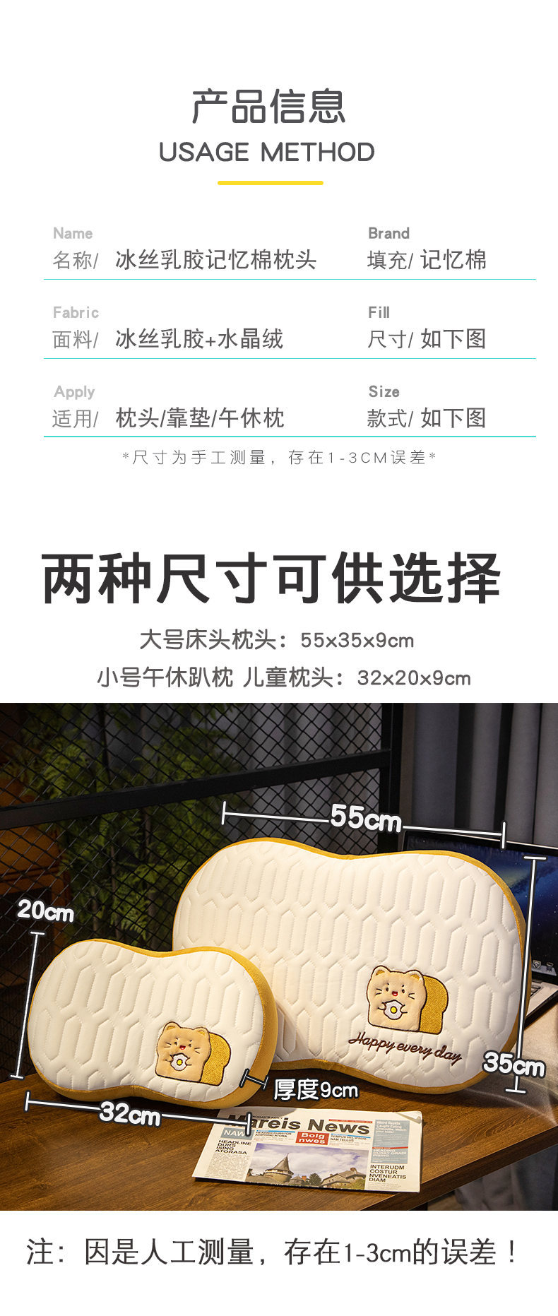 | 大号 约55X32*9cm【可拆洗枕套+记忆棉枕芯】 | ¥3375 | 999个可售 |