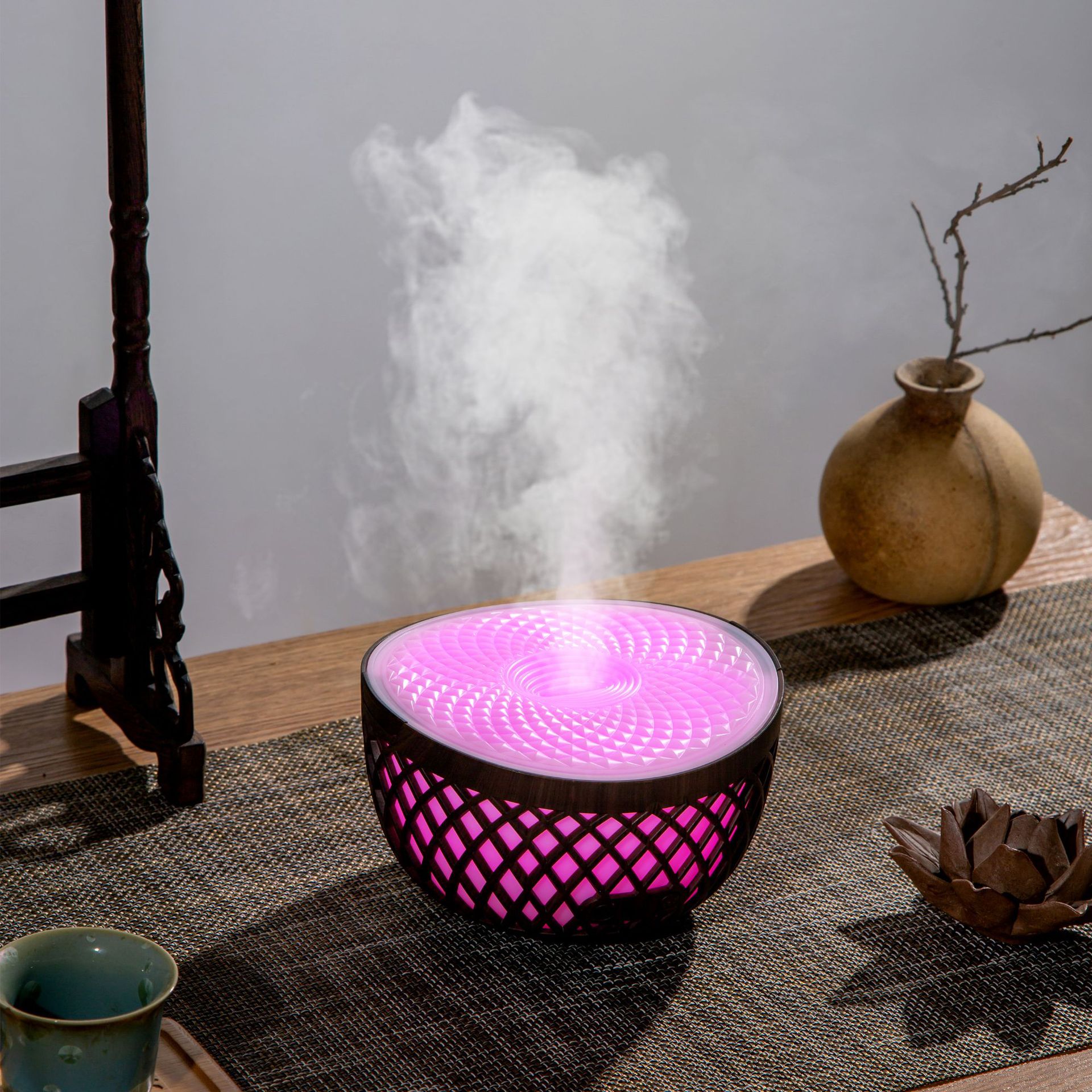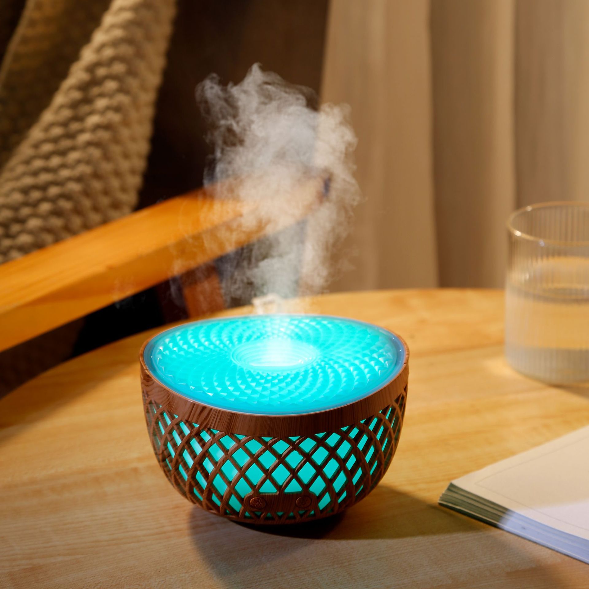 新款卡塔香薰机镂空木纹加湿器精油扩散香氛机USB办公家用加湿器 English | 投诉