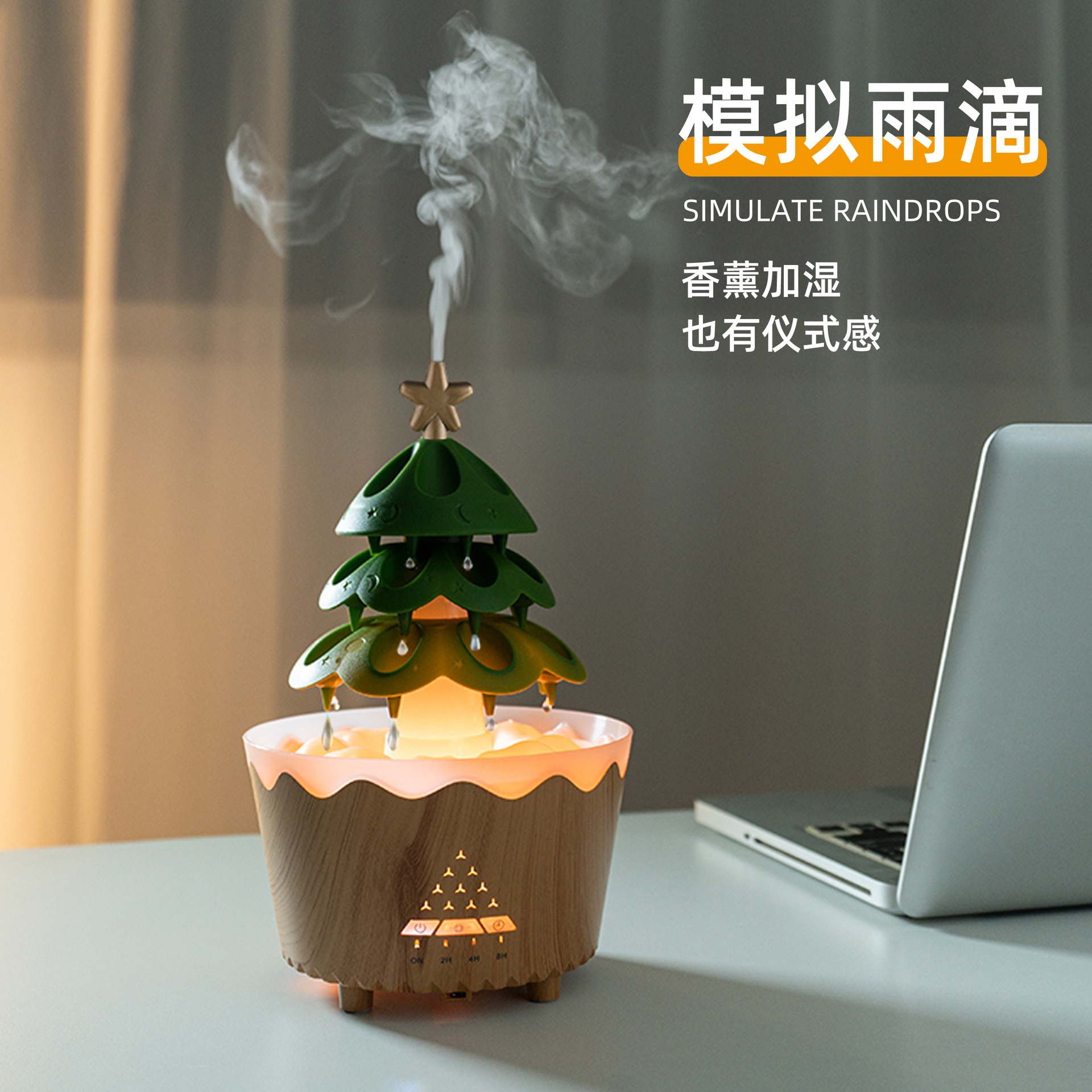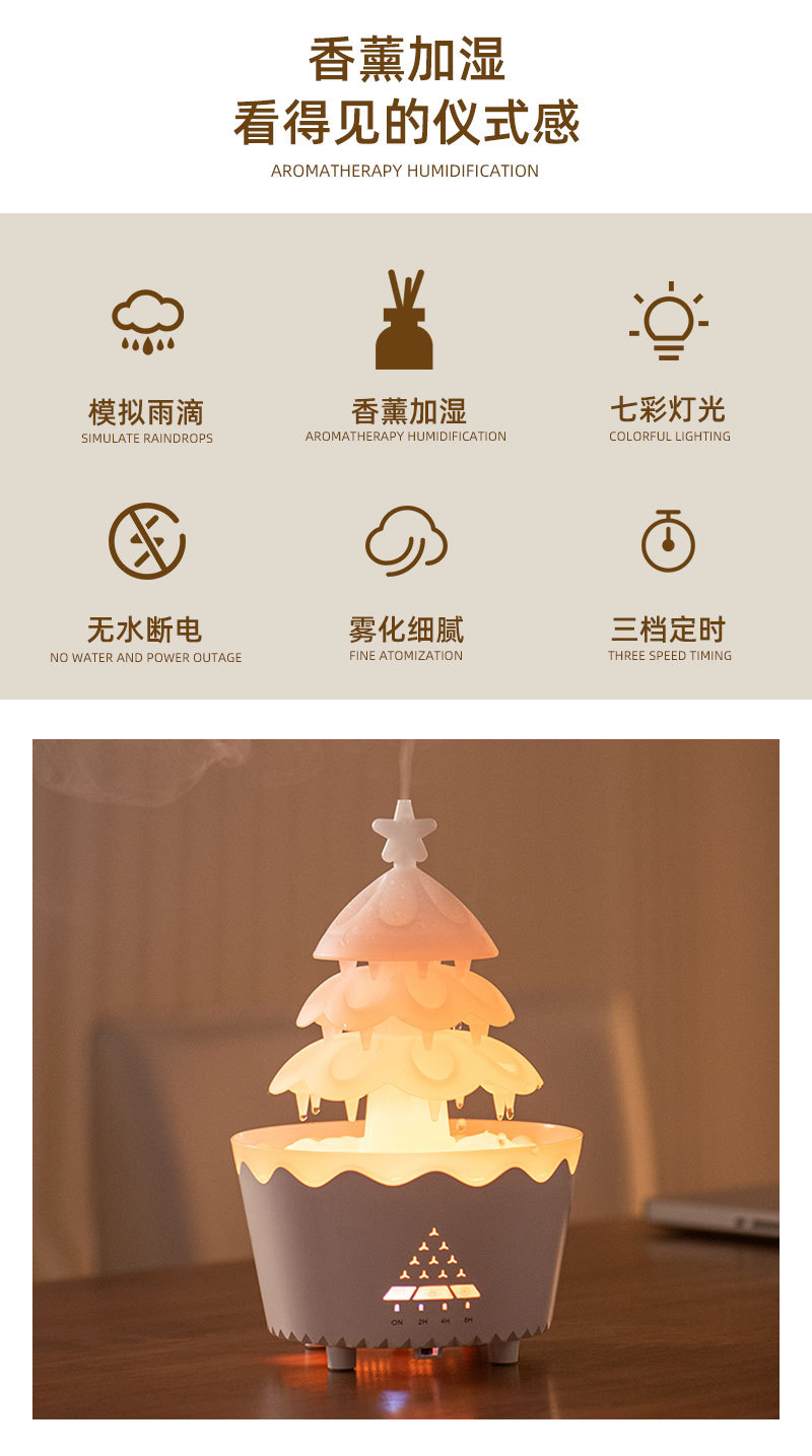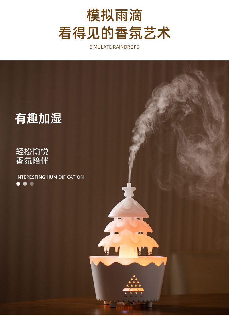 定制旋转圣诞香薰机家用精油扩香专用桌面七彩雨滴加湿器外贸礼品 English | 投诉