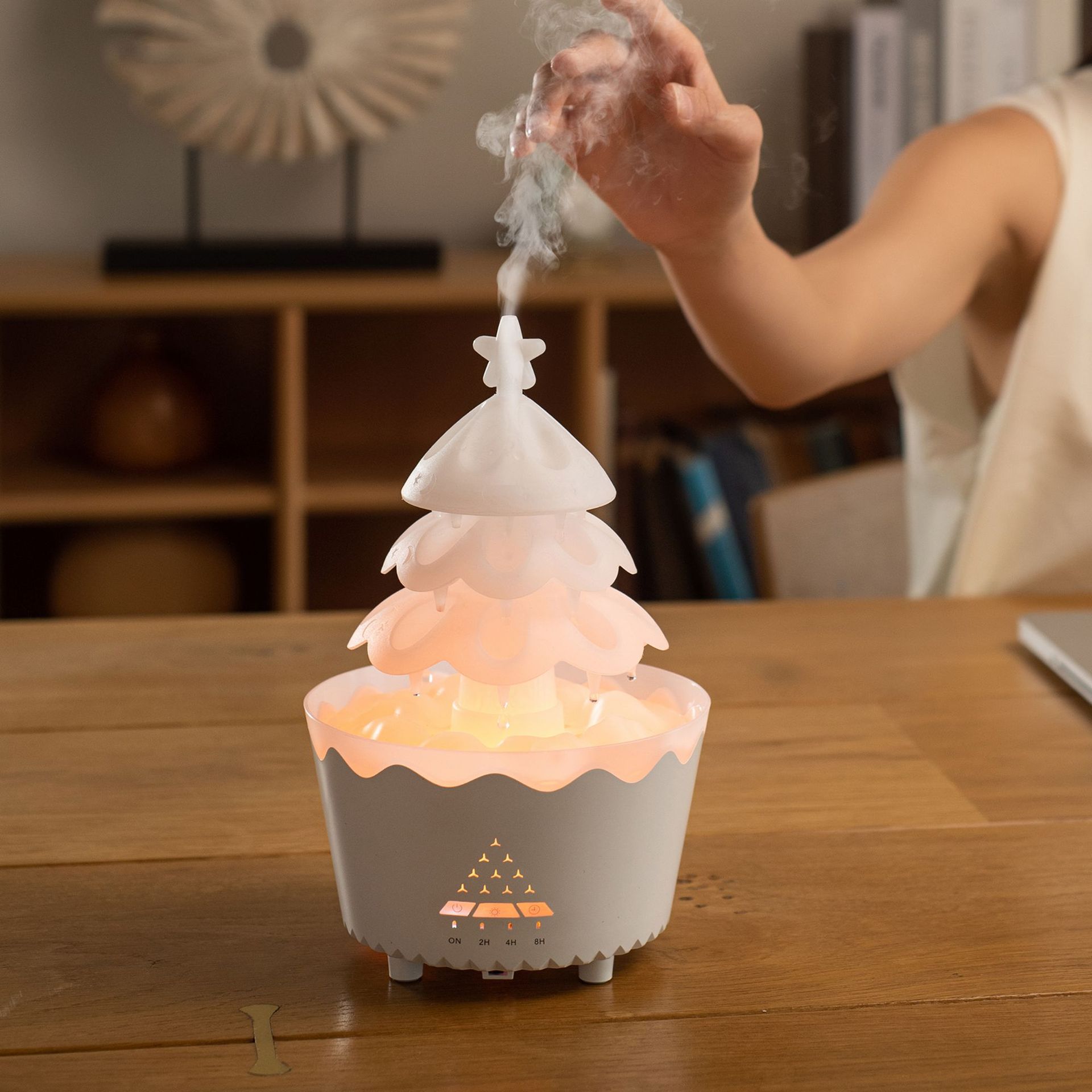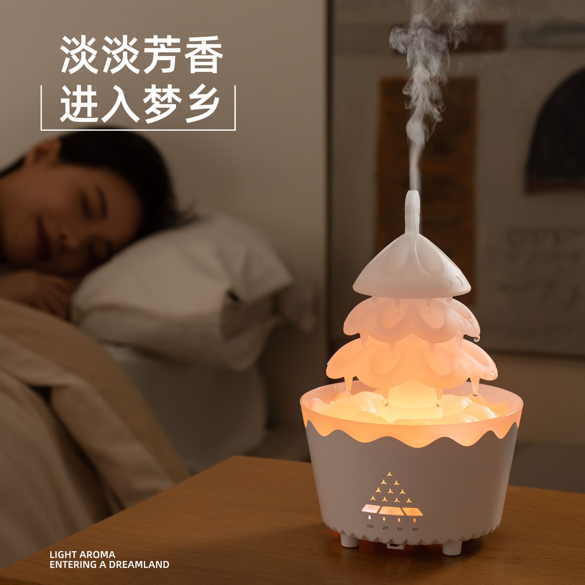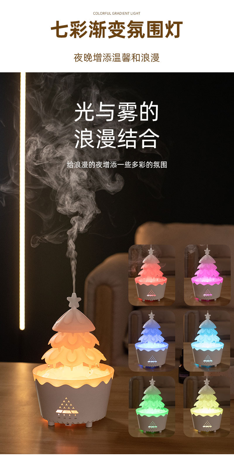 定制旋转圣诞香薰机家用精油扩香专用桌面七彩雨滴加湿器外贸礼品 English | 投诉
