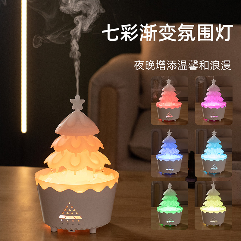 定制旋转圣诞香薰机家用精油扩香专用桌面七彩雨滴加湿器外贸礼品